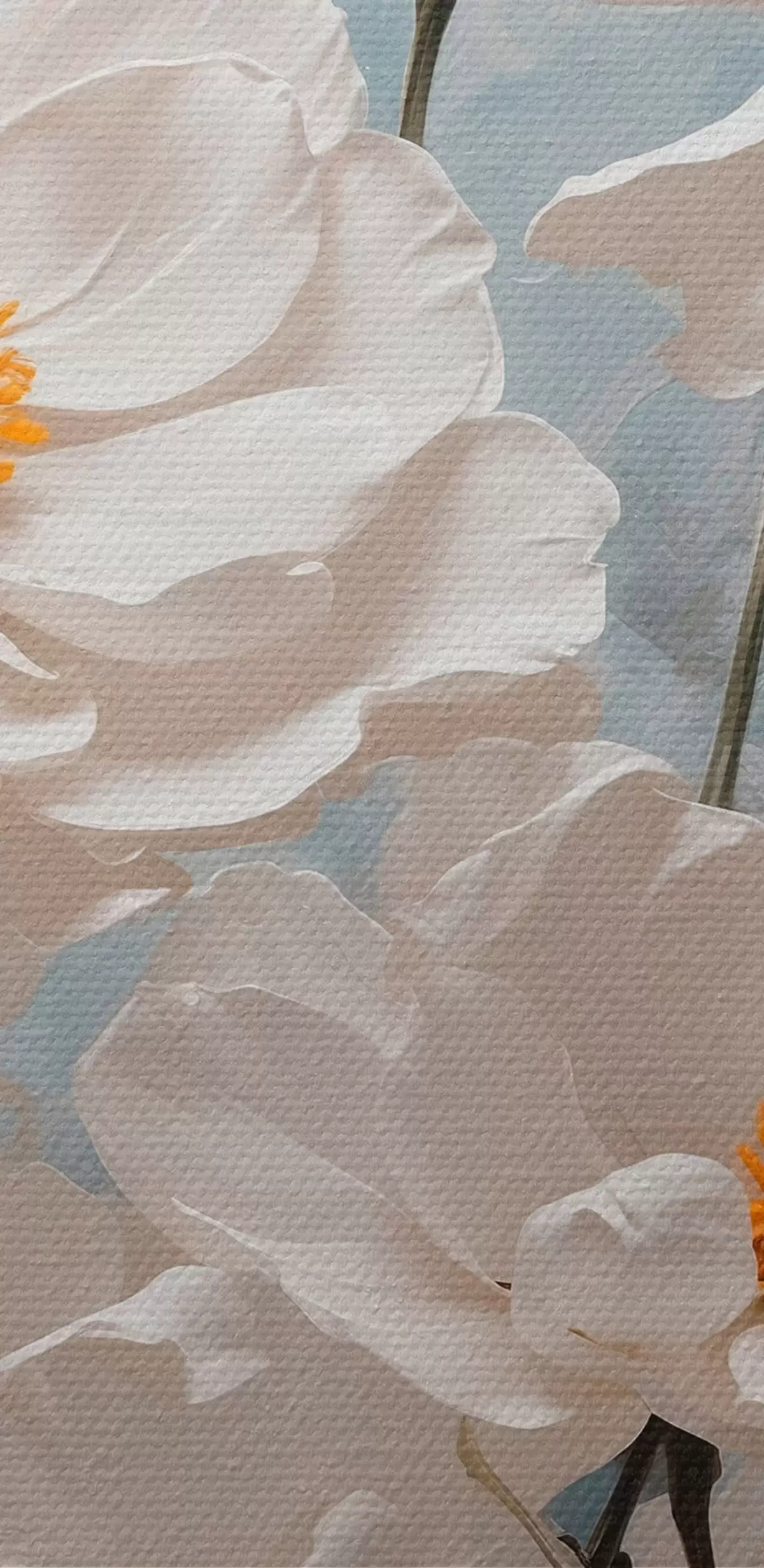 Er zijn drie soorten materiaal te bestellen: Economic Canvas - een dicht en duurzaam materiaal voor digitaal printen, identiek aan schildersdoek, waterdicht oppervlak, realistische weergave van details, materiaal met gemiddelde korrel. Premium Canvas - de textuur lijkt op die van schildersdoek (verweven kleine draden). Zachte, gedetailleerde reproductie van de afbeelding op een mat oppervlak. Eco-Premium - hoogwaardige 100% katoenen stof. Dankzij de natuurlijke katoenvezels is het materiaal duurzaam en slijtvast. Uitstekende kleurweergave en detail.