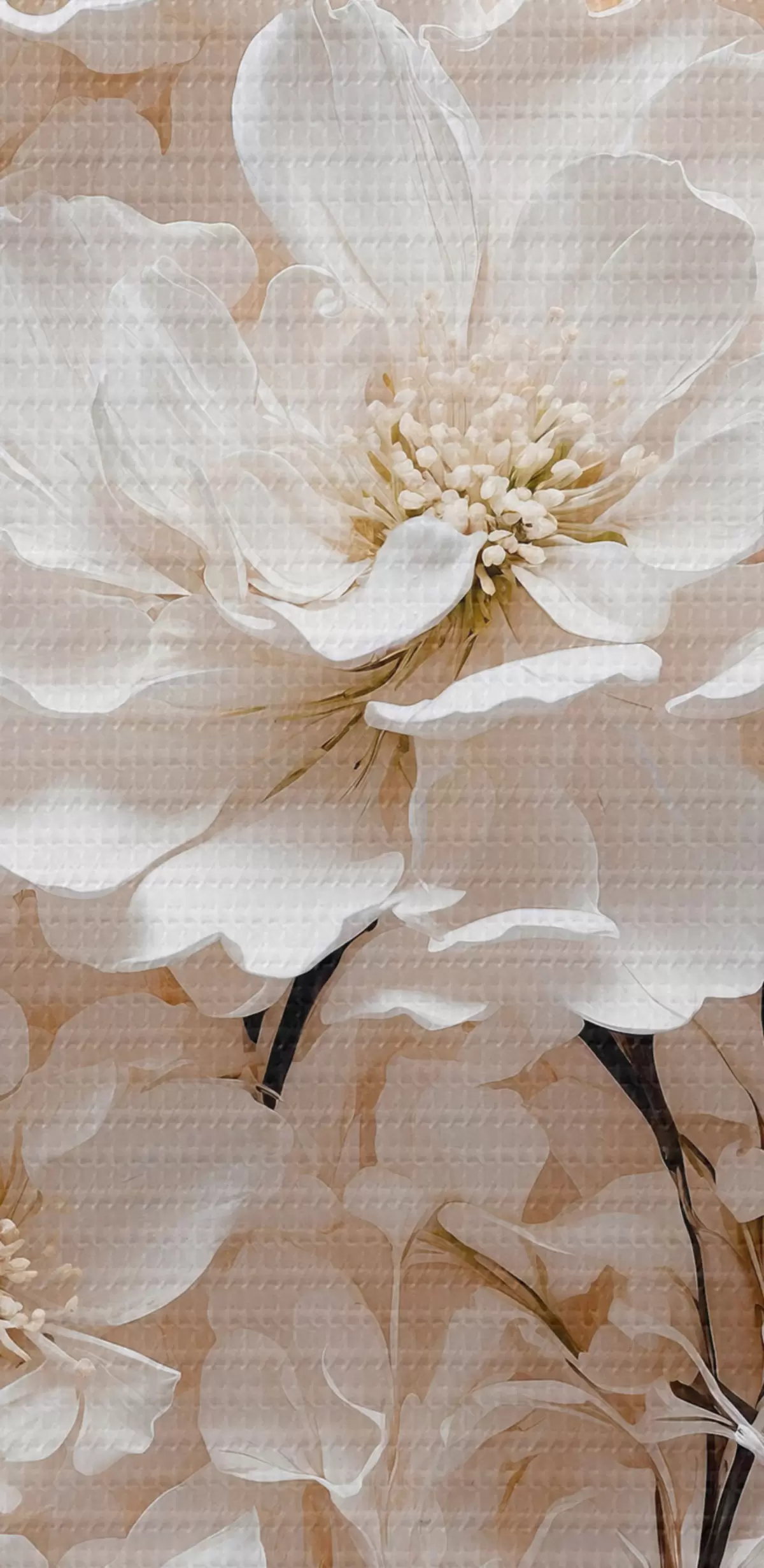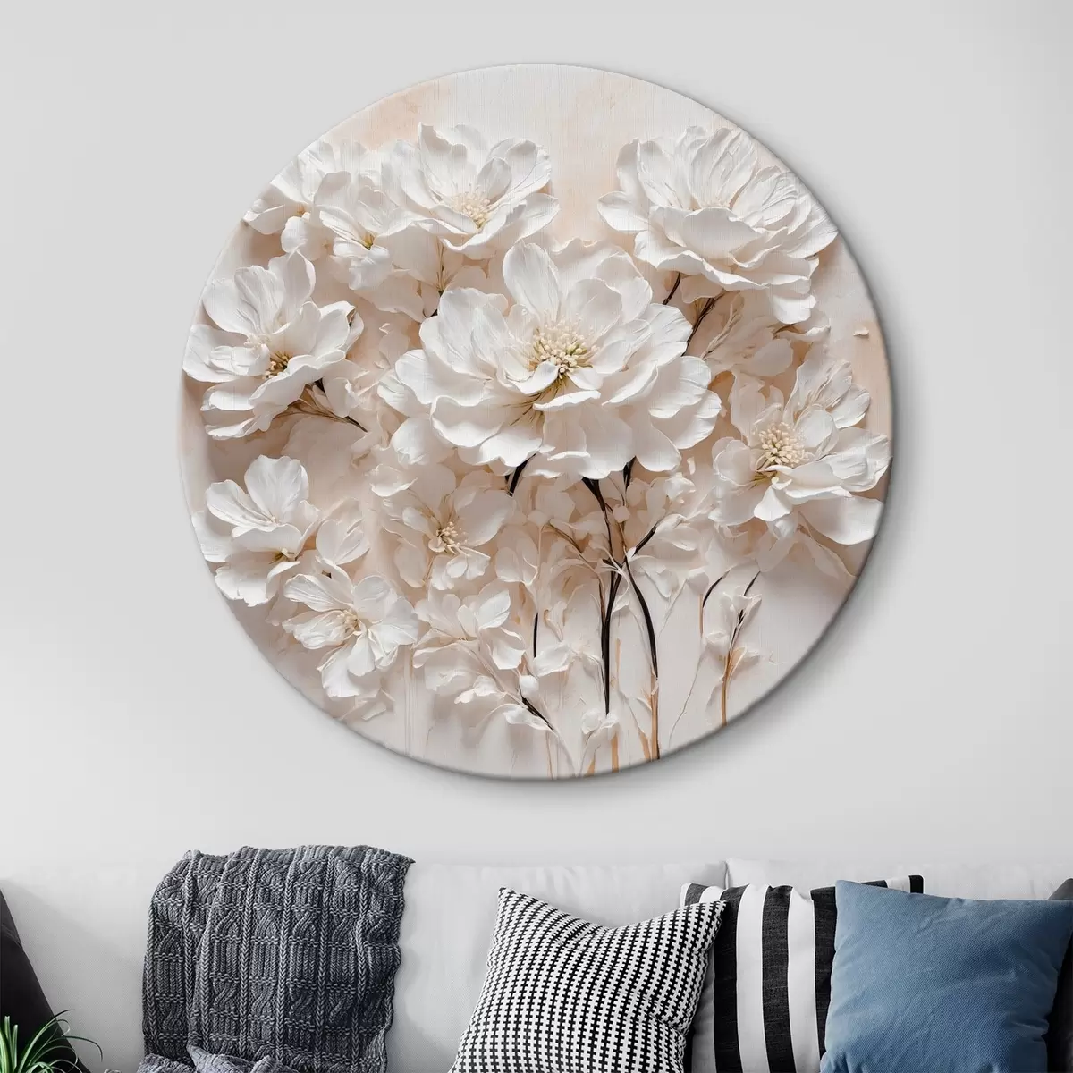 Ronde schilderijen Witte bloemen op een witte en oranje achtergrond Nr r41042