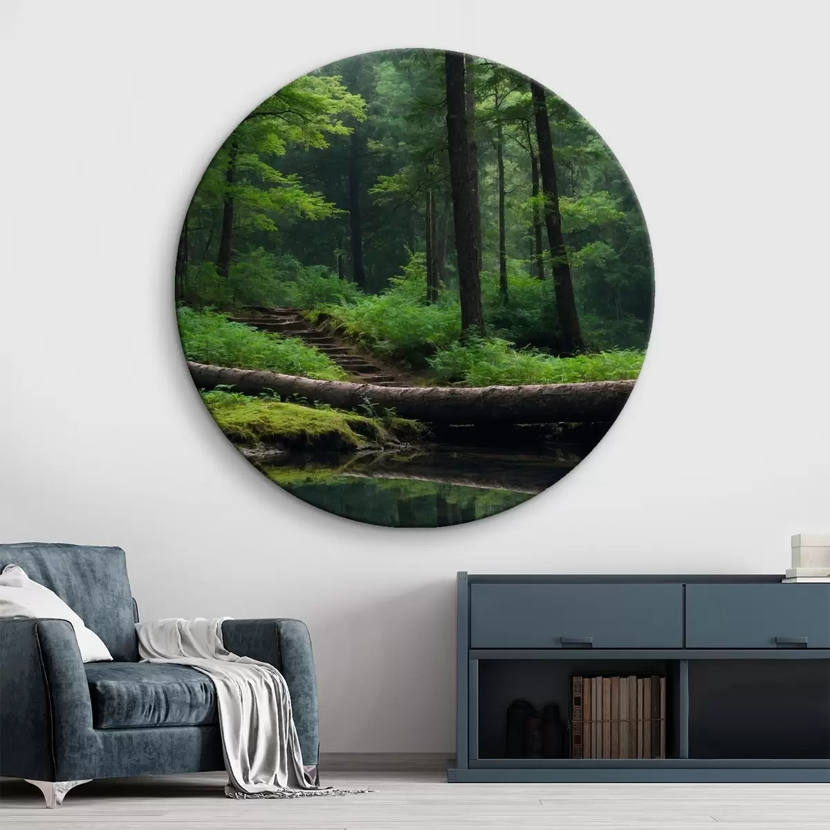 Ronde schilderijen Omgevallen boom in het bos Nr r41054