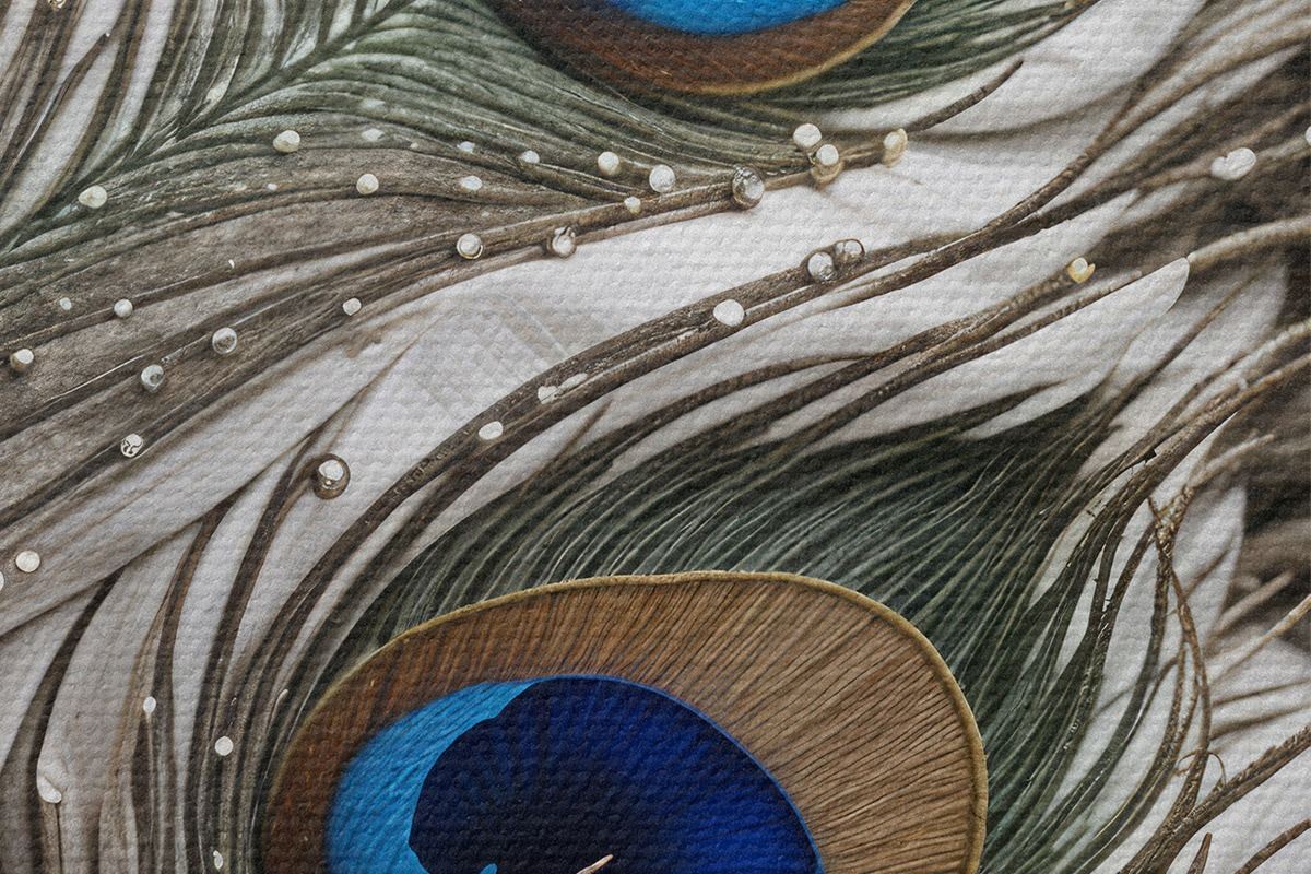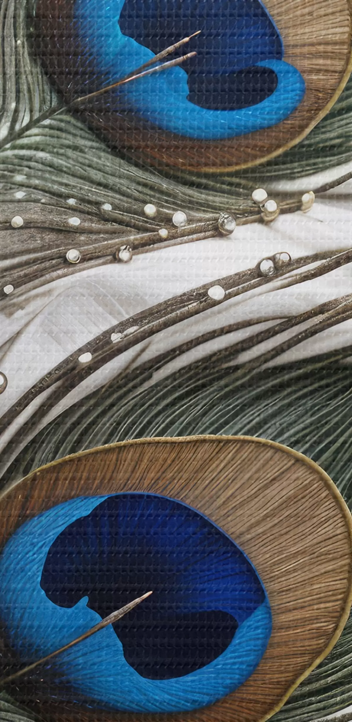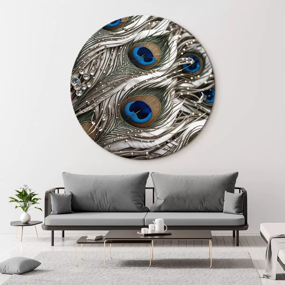 Ronde schilderijen Levendige pauwenveren met ingewikkelde ontwerpen en opvallende blauwe patronen Nr r41103