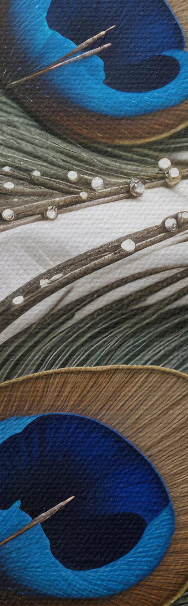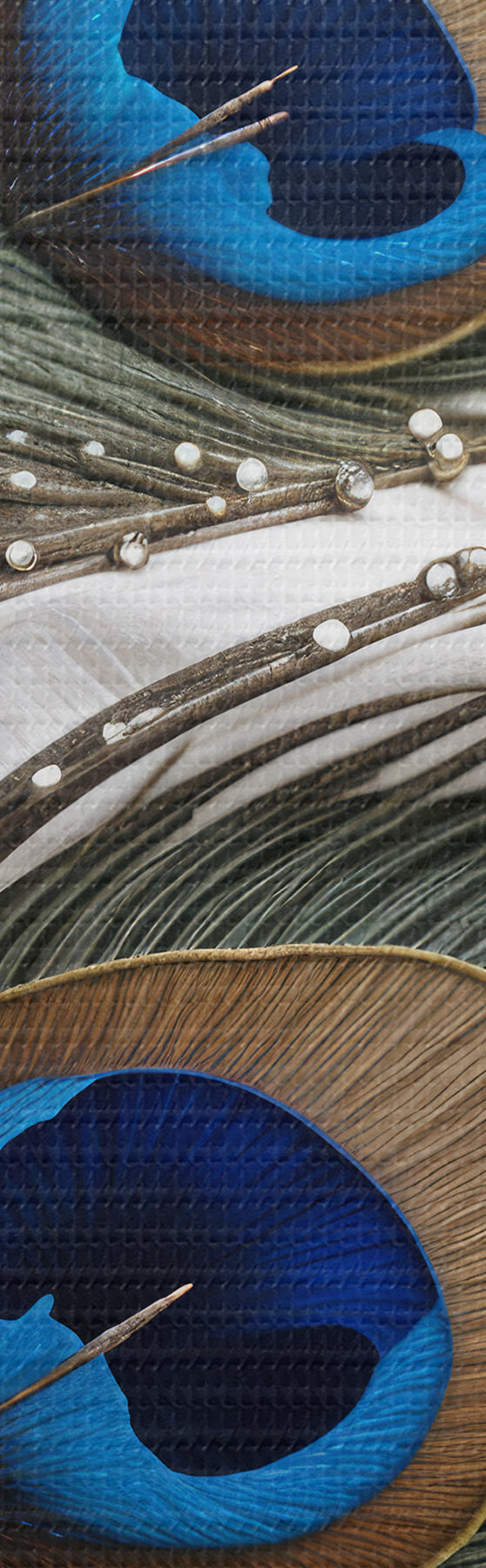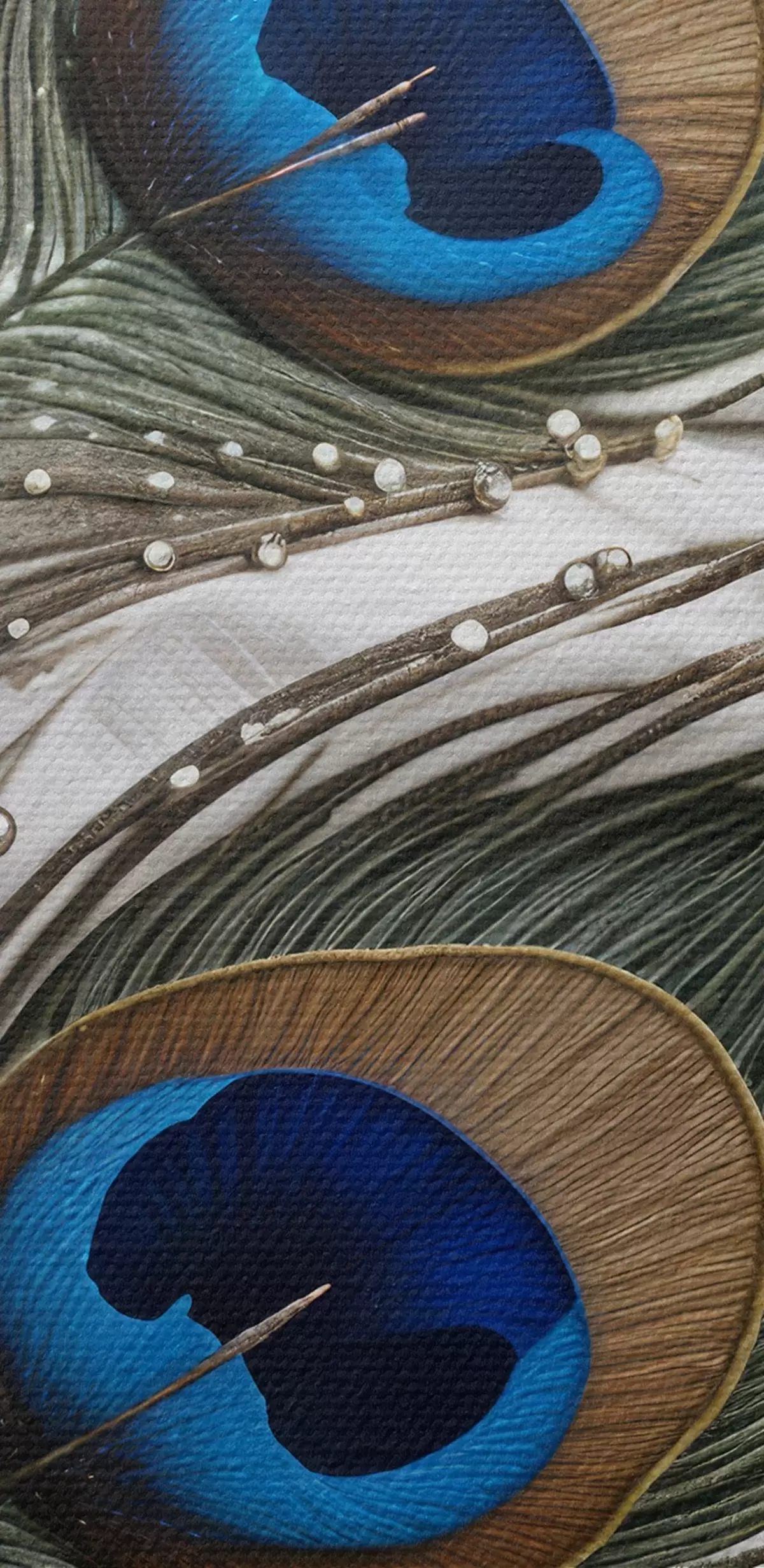 Ronde schilderijen Levendige pauwenveren met ingewikkelde ontwerpen en opvallende blauwe patronen Nr r41103