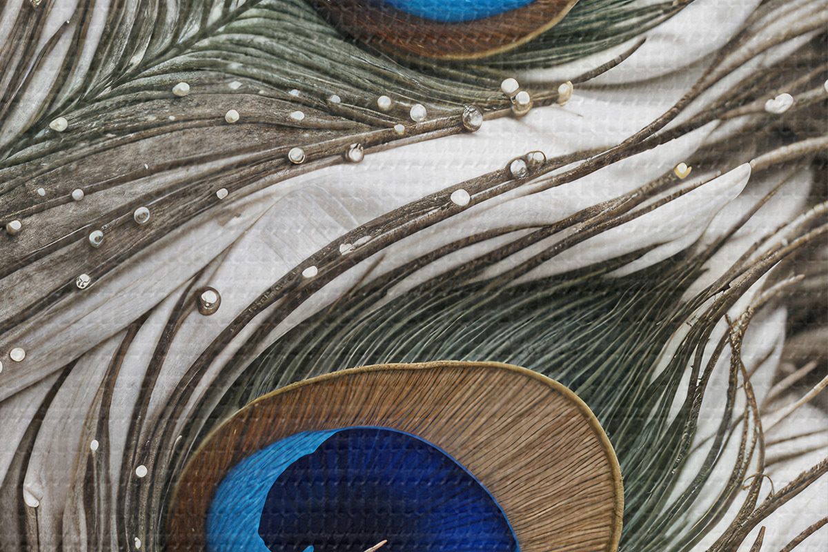 Ronde schilderijen Levendige pauwenveren met ingewikkelde ontwerpen en opvallende blauwe patronen r41103