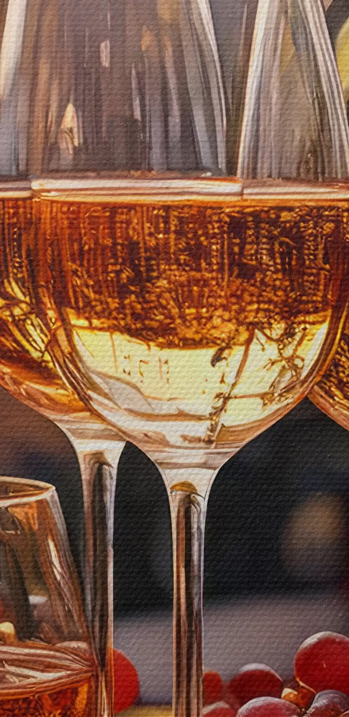 Ronde schilderijen glazen met wijn, druiven op tafel, stilleven Nr r41104