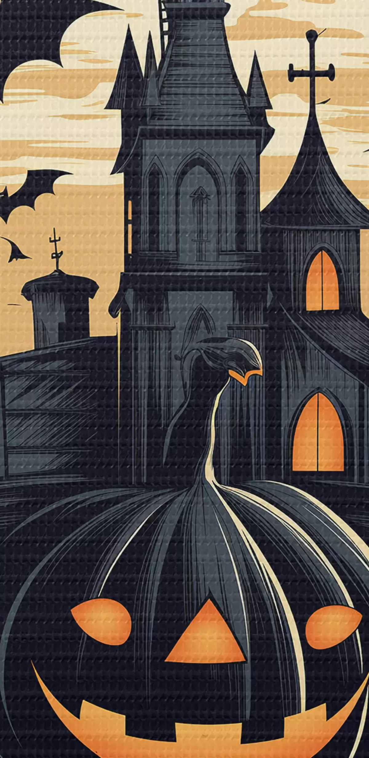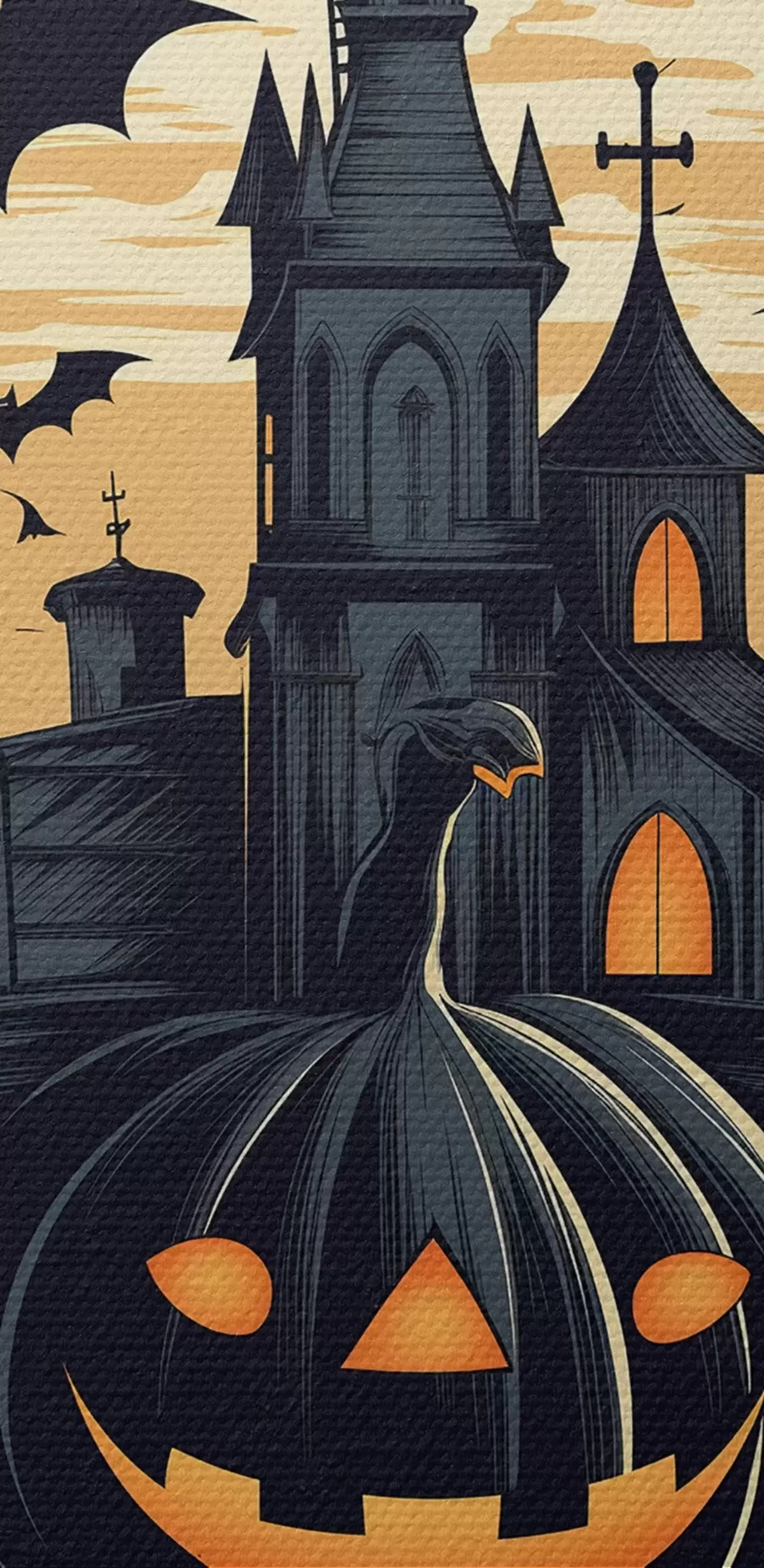 Ronde schilderijen Kasteel, vleermuizen en pompoenen Nr r41137