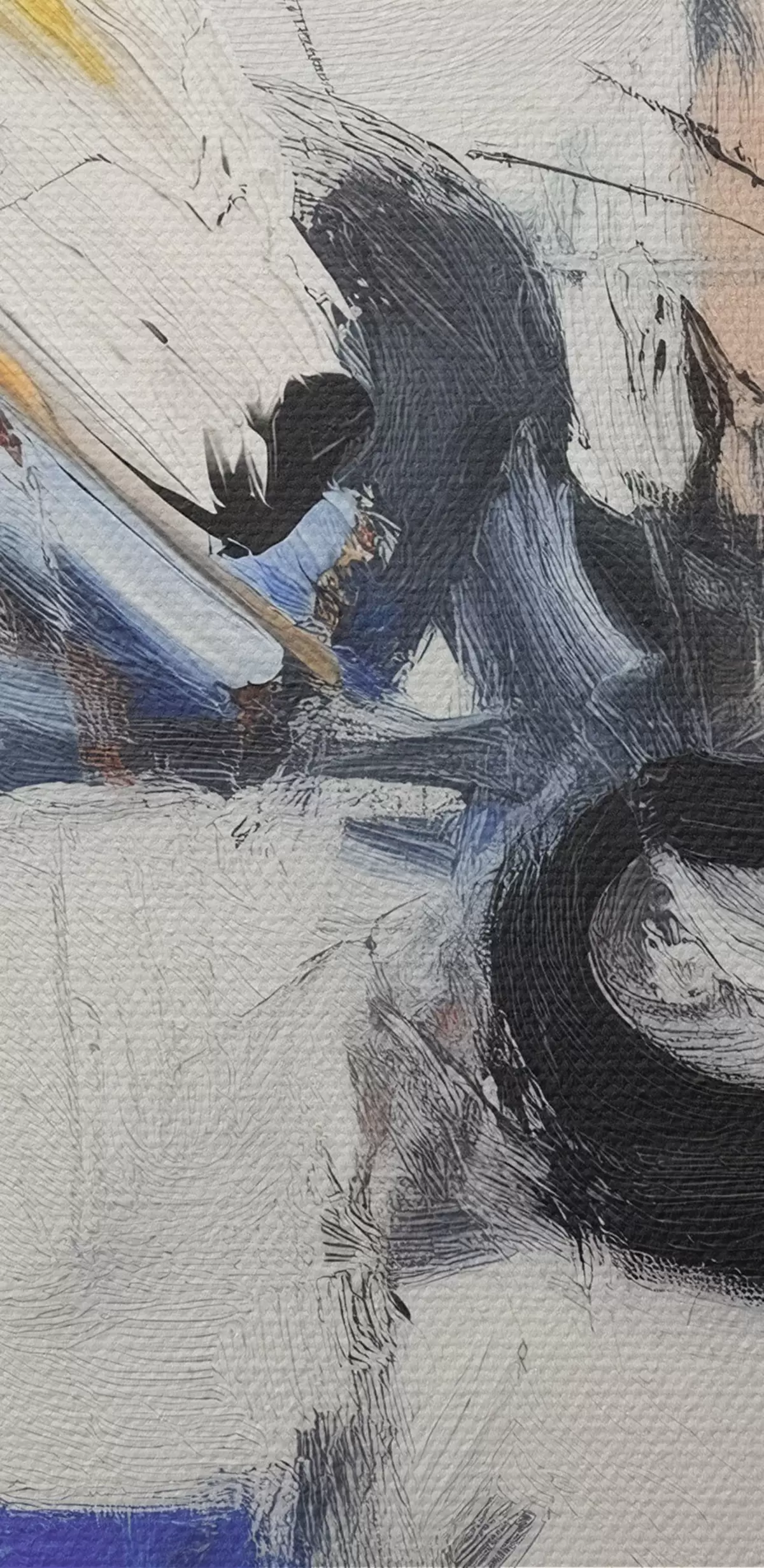 Het schilderij kan direct na ontvangst worden opgehangen. Het schilderij wordt opgespannen op een 2 cm breed houten spieraam.