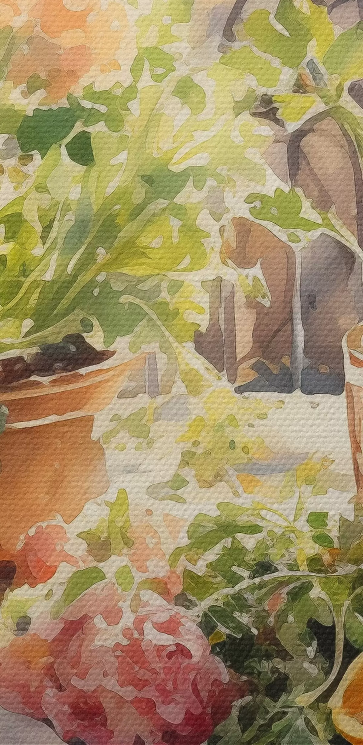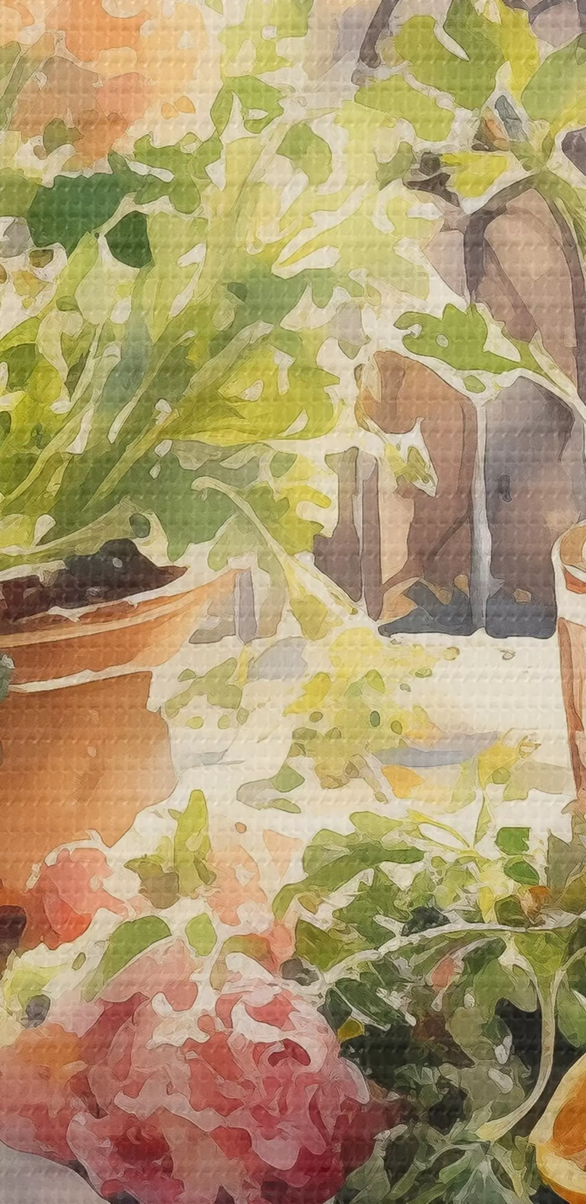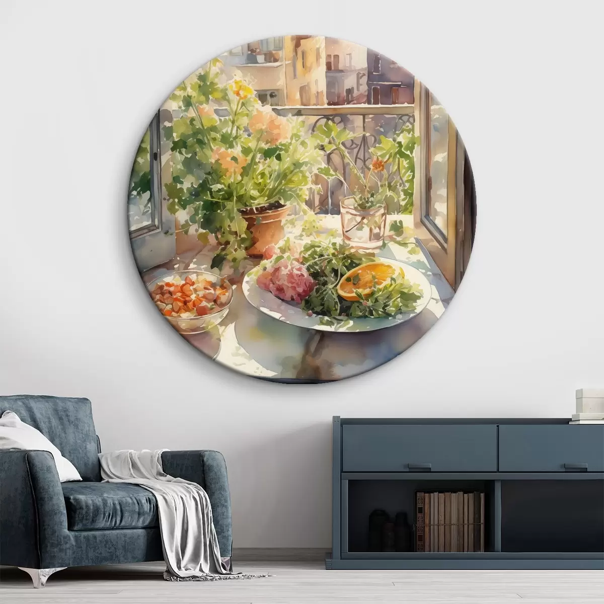 Ronde schilderijen Aquarel diner, stadsgezicht, bloemen, natuur, groene salade Nr r41166