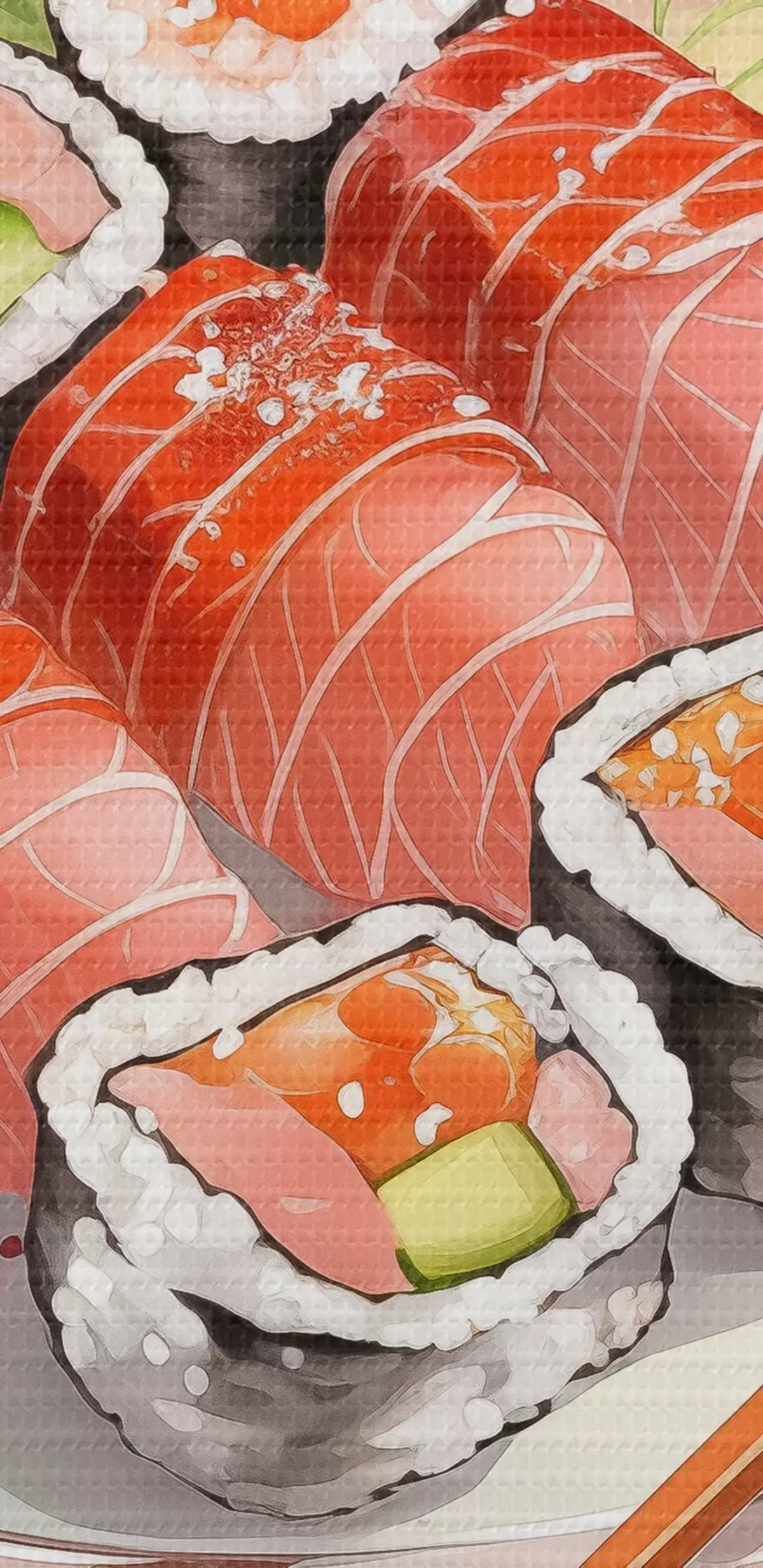 Ronde schilderijen Aquarel sushi, bloemig, Japans r41181
