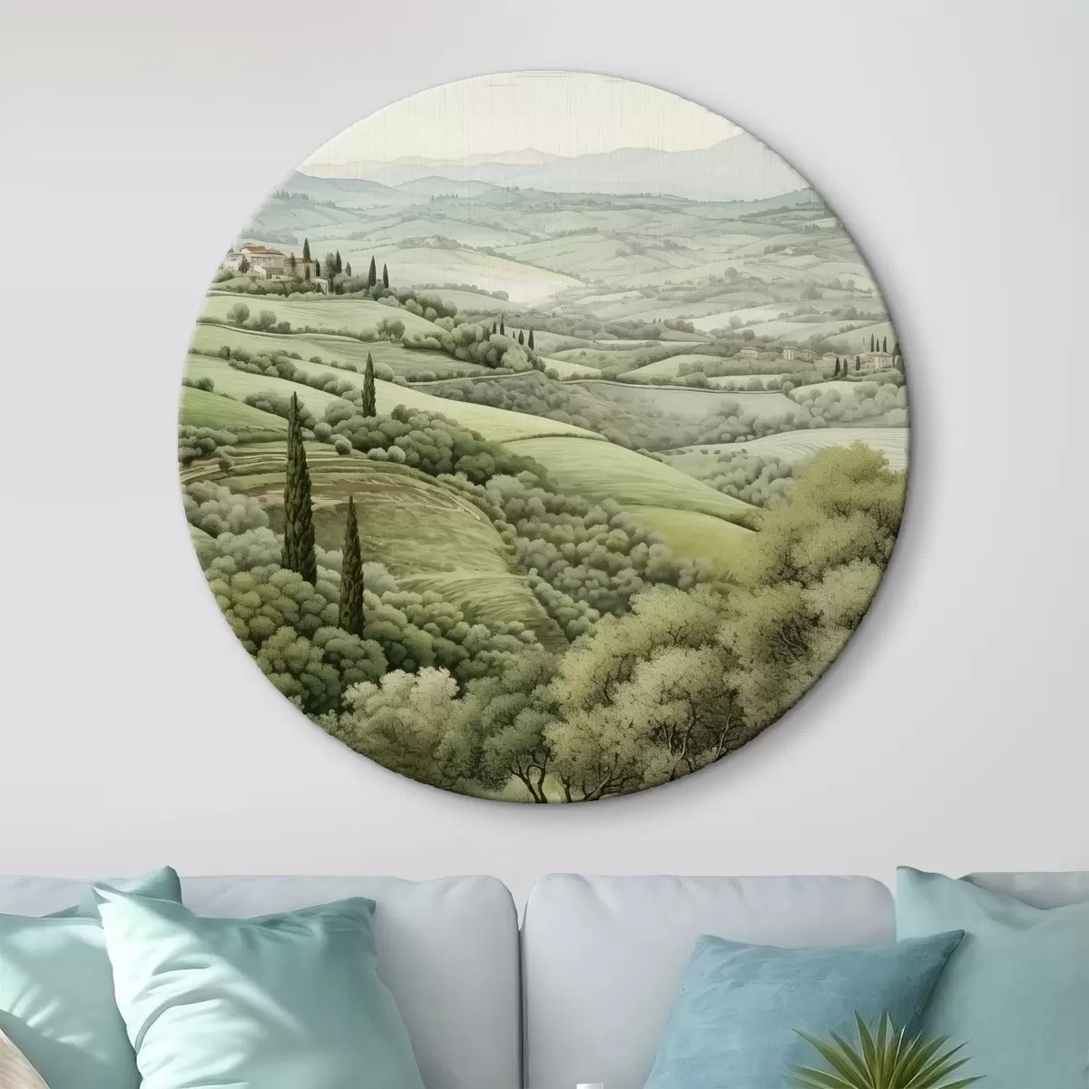 Ronde schilderijen Aquarel landschappen met bomen en bergen, Toscana, zomer Nr r41222