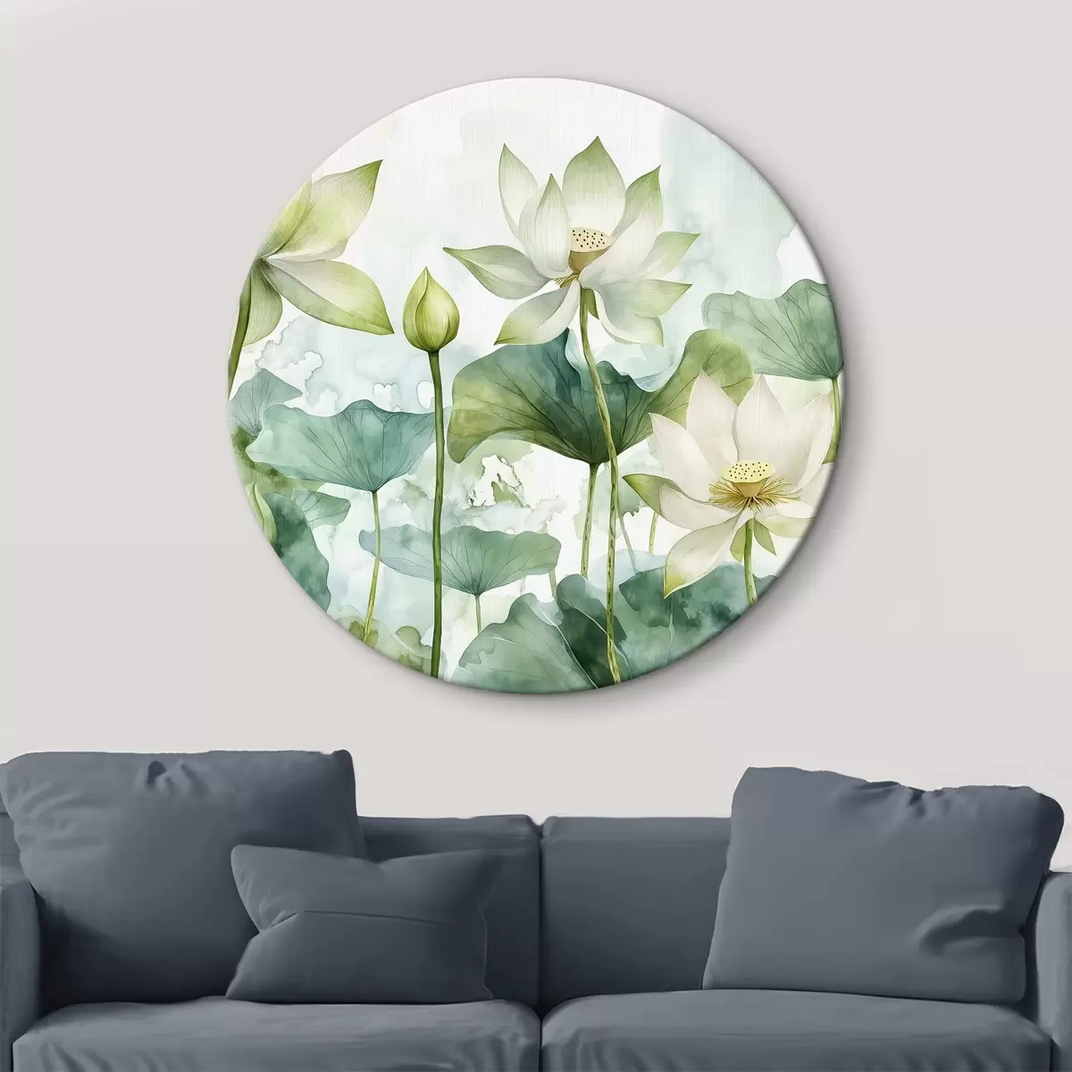 Ronde schilderijen Aquarel lotussen, weelderig groen Nr r41226