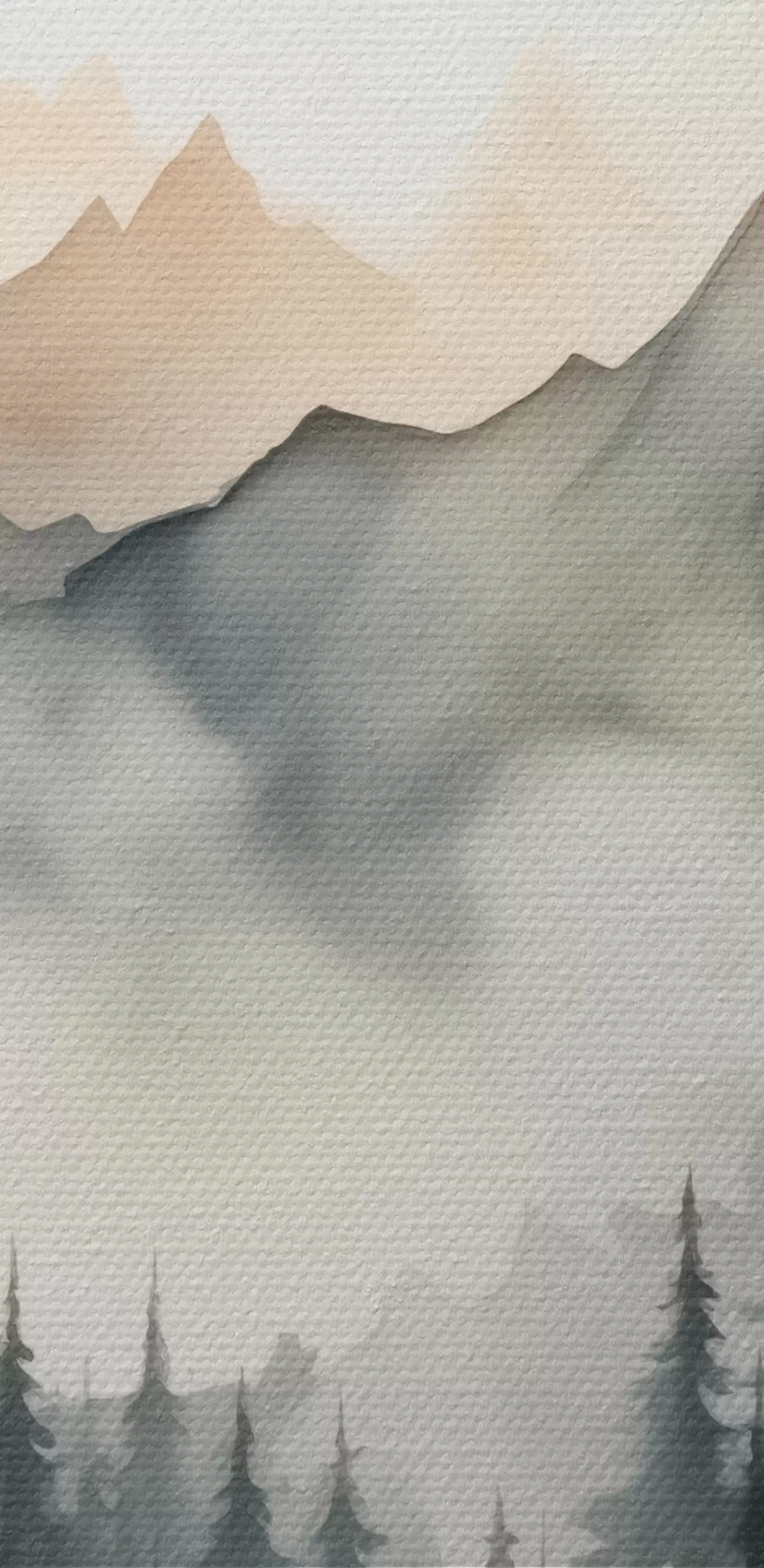 Ronde schilderijen Bos op de achtergrond van aquarel bergen r41240