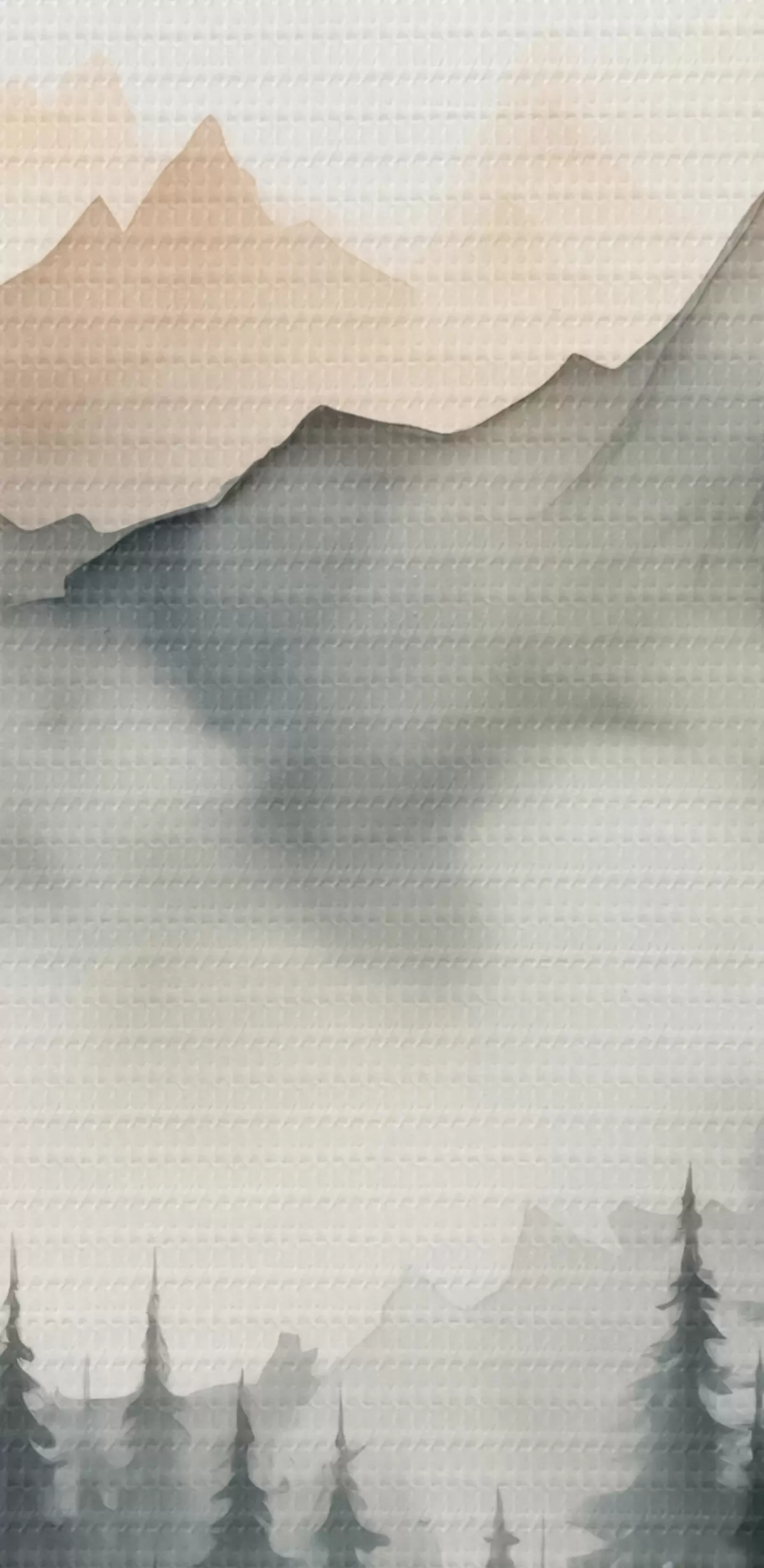 Ronde schilderijen Bos op de achtergrond van aquarel bergen Nr r41240