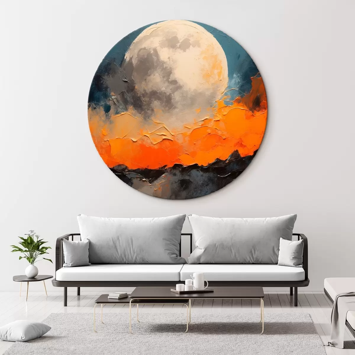 Ronde schilderijen Abstract olieverfschilderij met de maan r41286