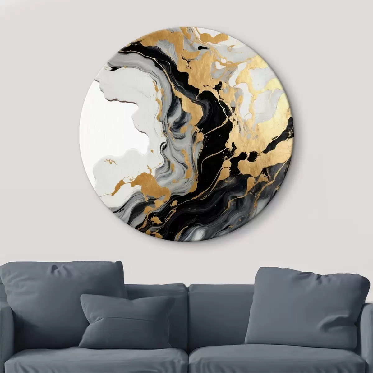 Ronde schilderijen Abstract aquarelschilderij met zwarte en gele verf Nr r41290