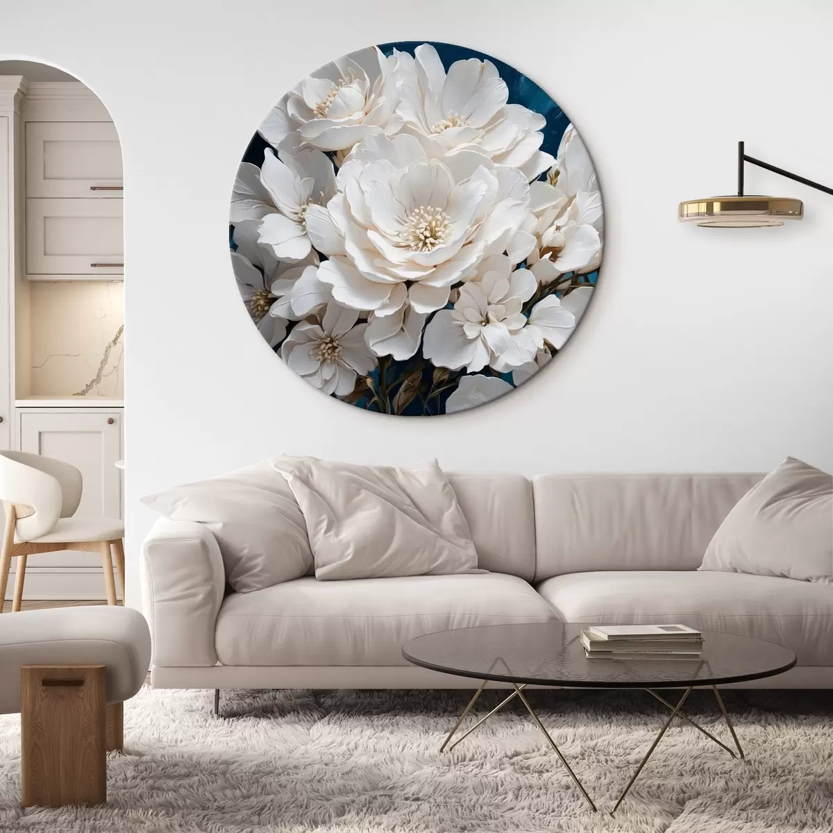 Ronde schilderijen Witte bloemen op een acrylachtergrond r41314