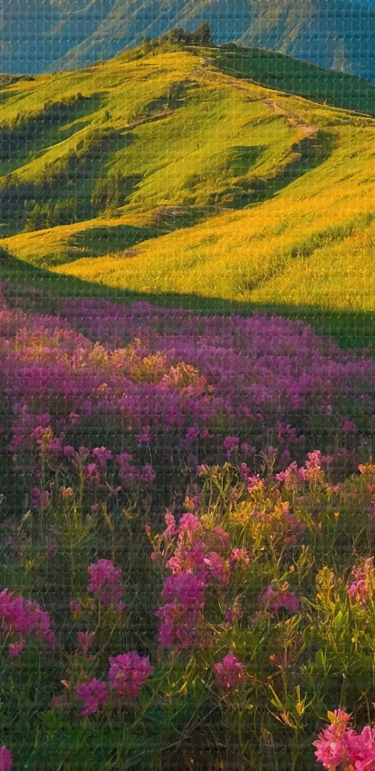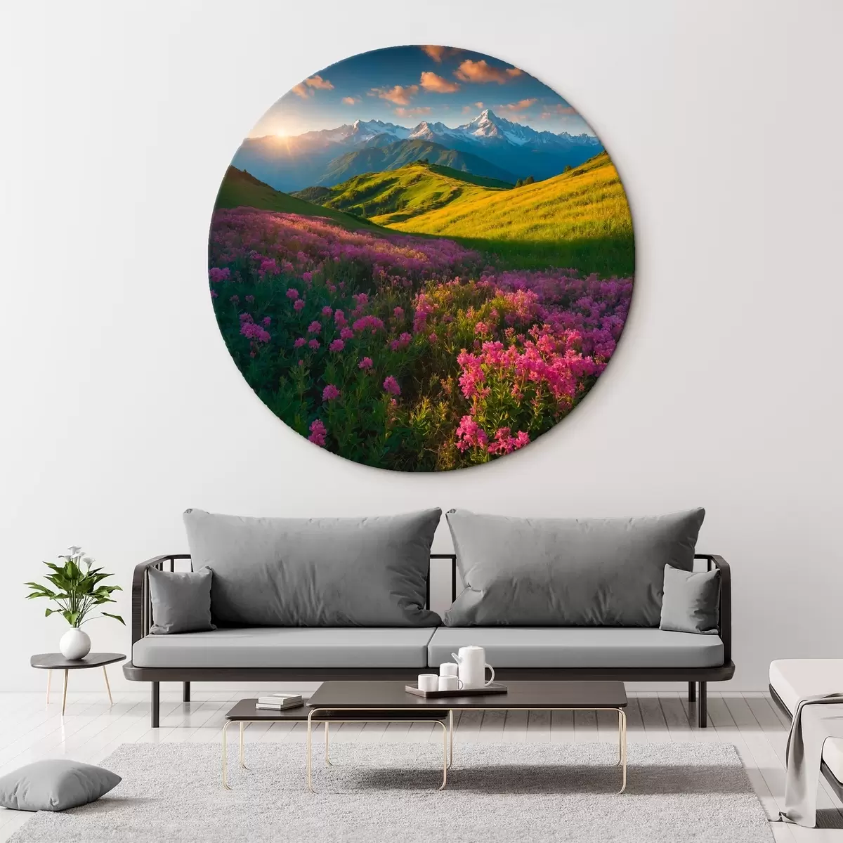 Ronde schilderijen Viooltjes op de bergtoppen Nr r41317