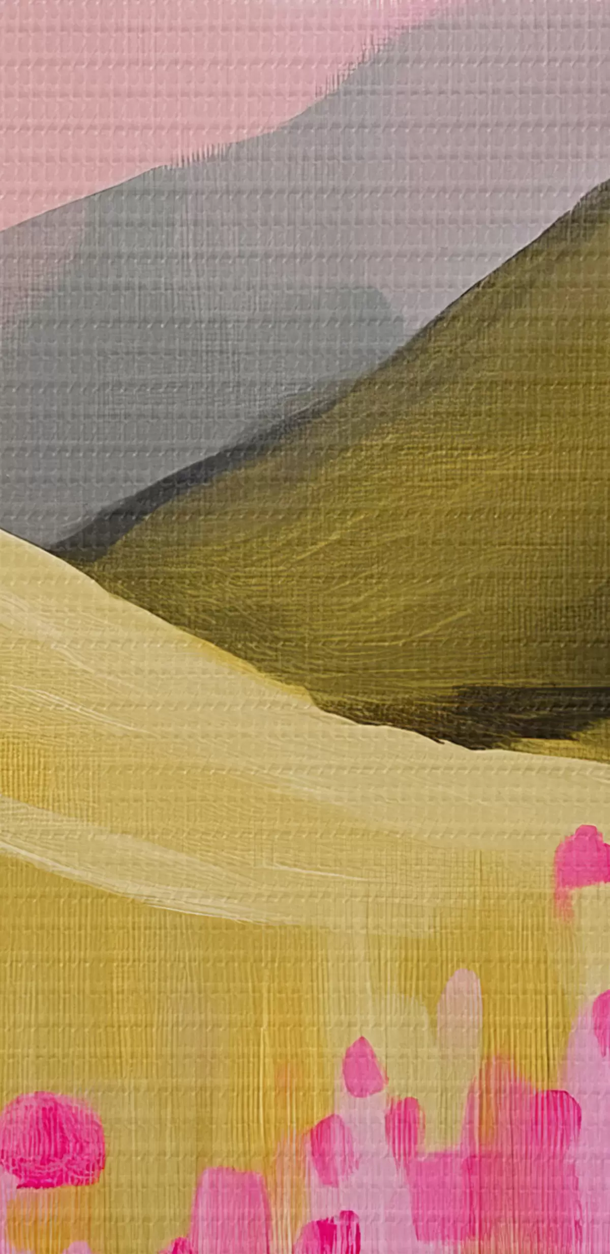 Ronde schilderijen Roze bloemen bij de bergen Nr r41339