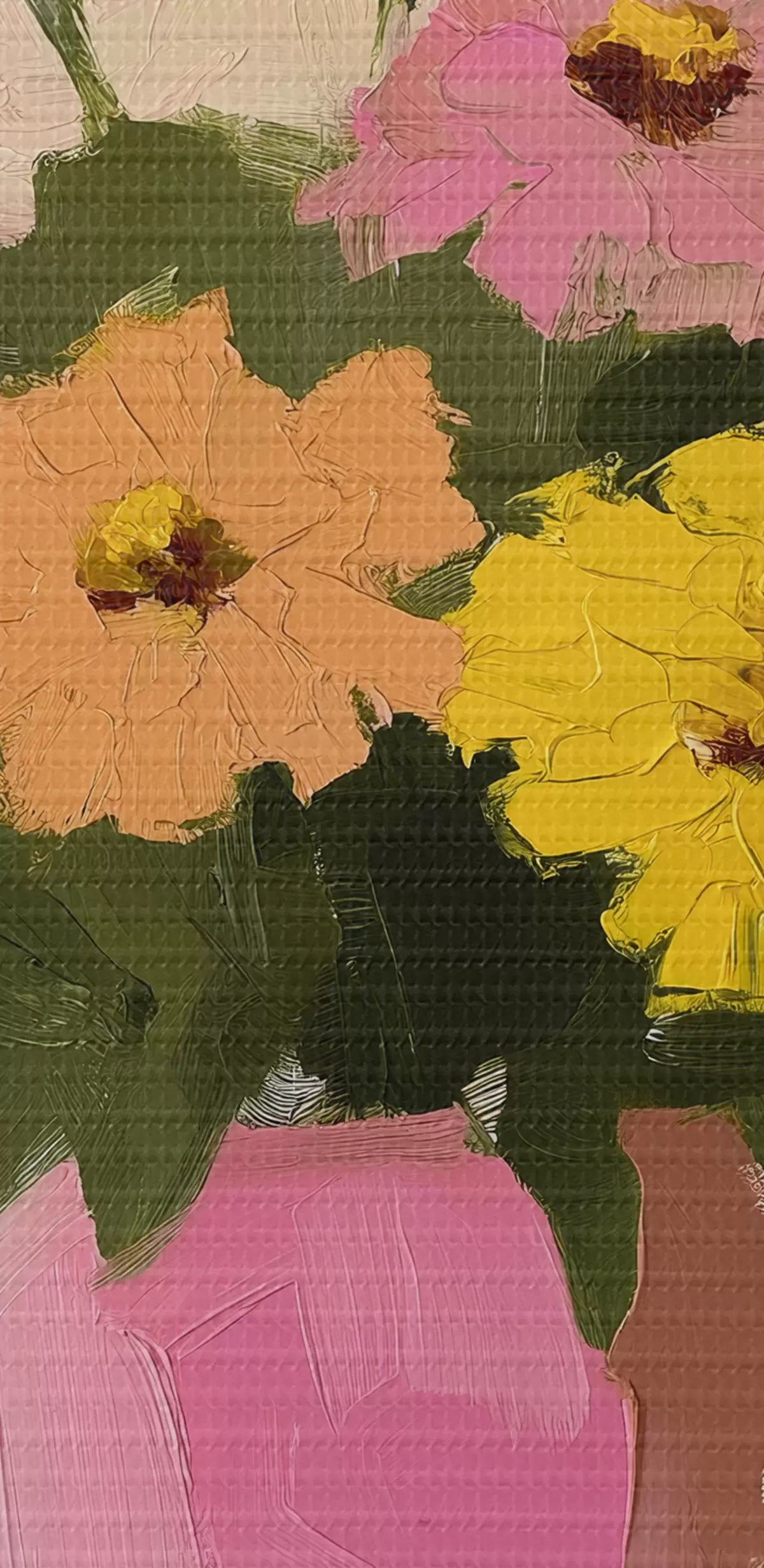 De fijne weving van draden op dit doek lijkt op het oppervlak van professionele schildersdoeken.
