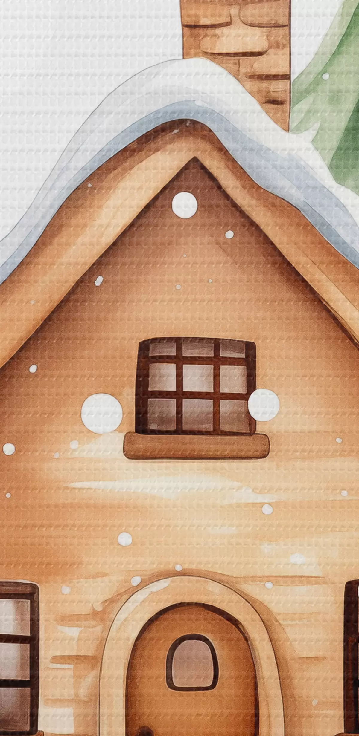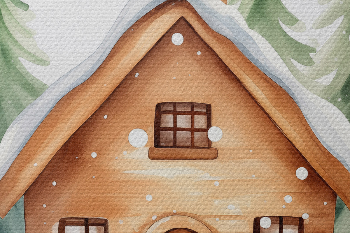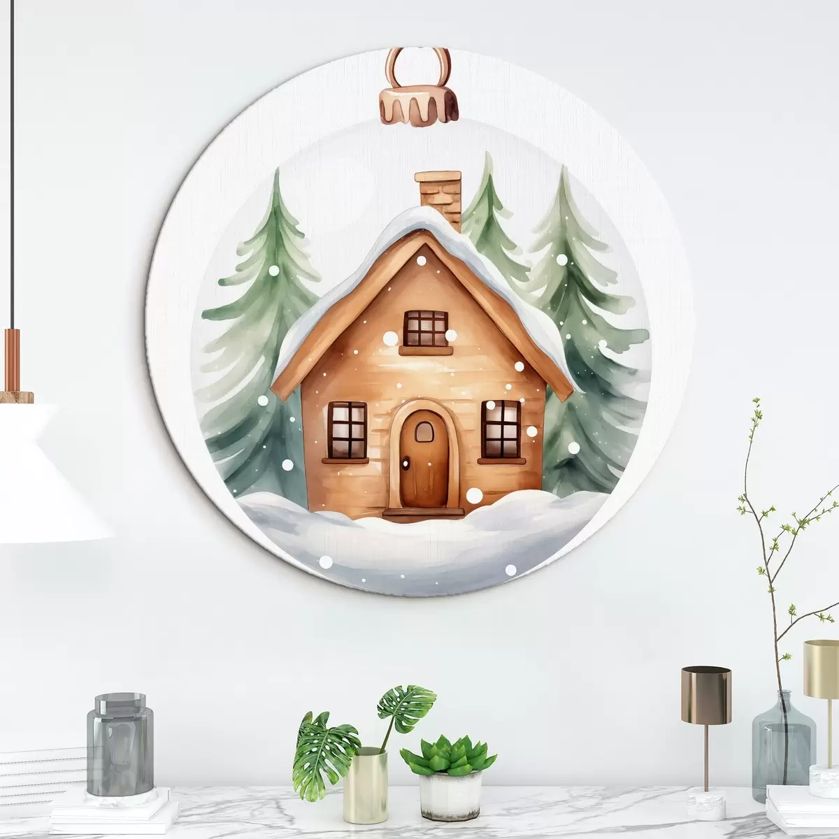 Ronde schilderijen Kristallen bol met aquarel huis in de sneeuw, dennenbomen Nr r41362