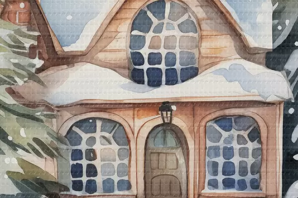 Ronde schilderijen Decoratieve kerstbal met een aquarel sneeuwhuisje en dennenbomen Nr r41363