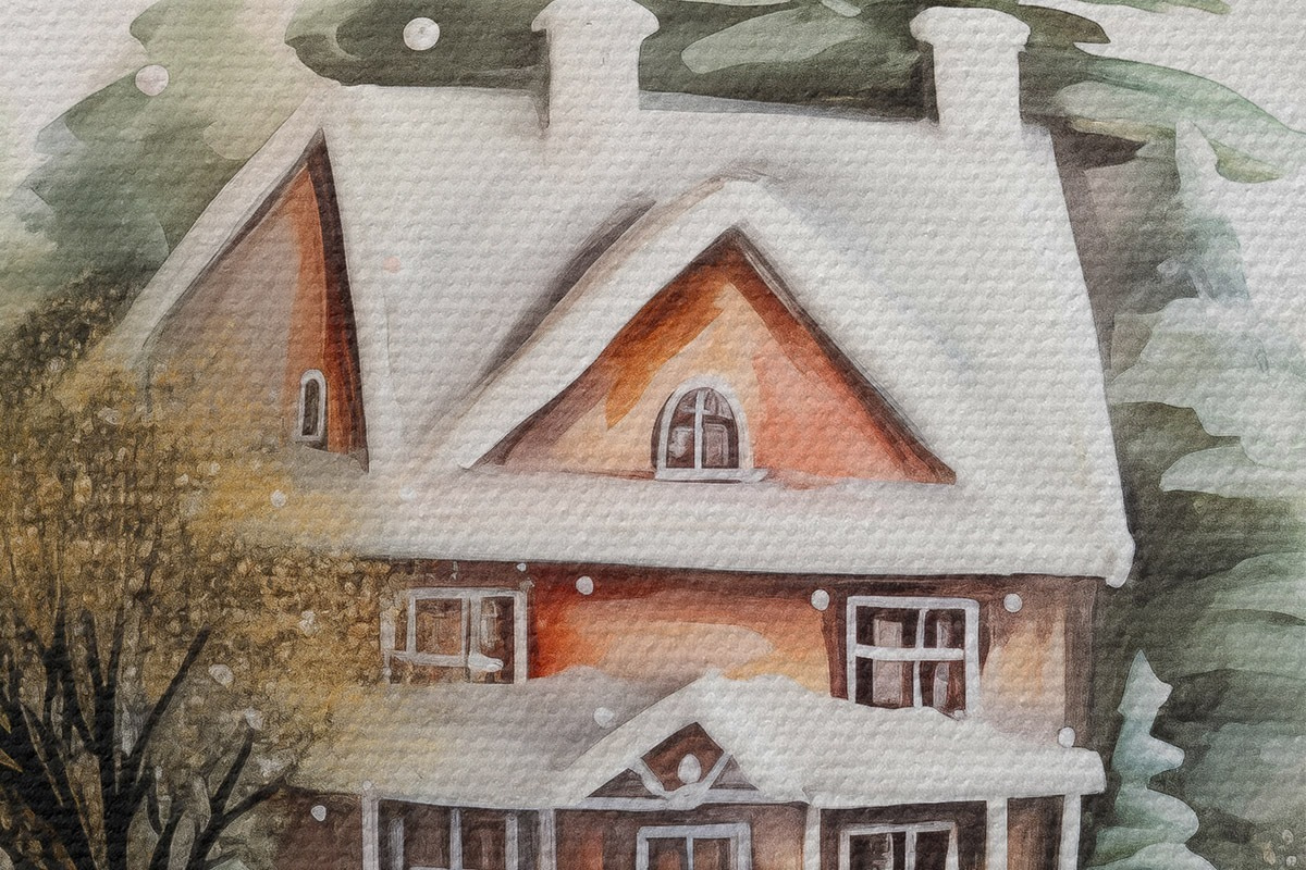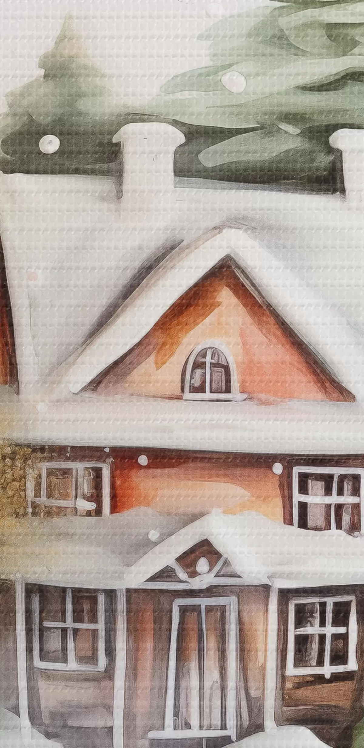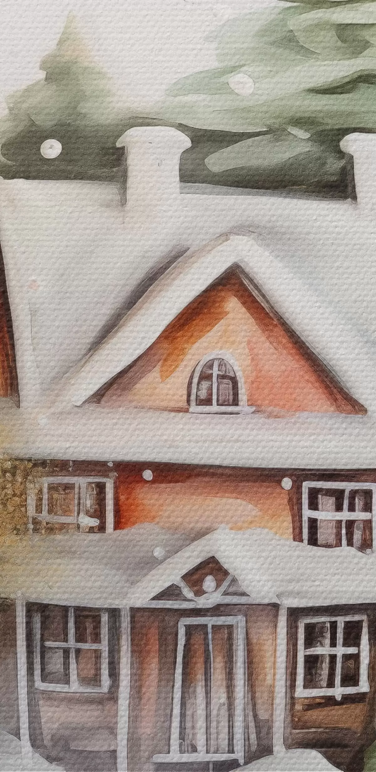 Ronde schilderijen Kristallen bol met aquarel huis en bomen in de sneeuw Nr r41365