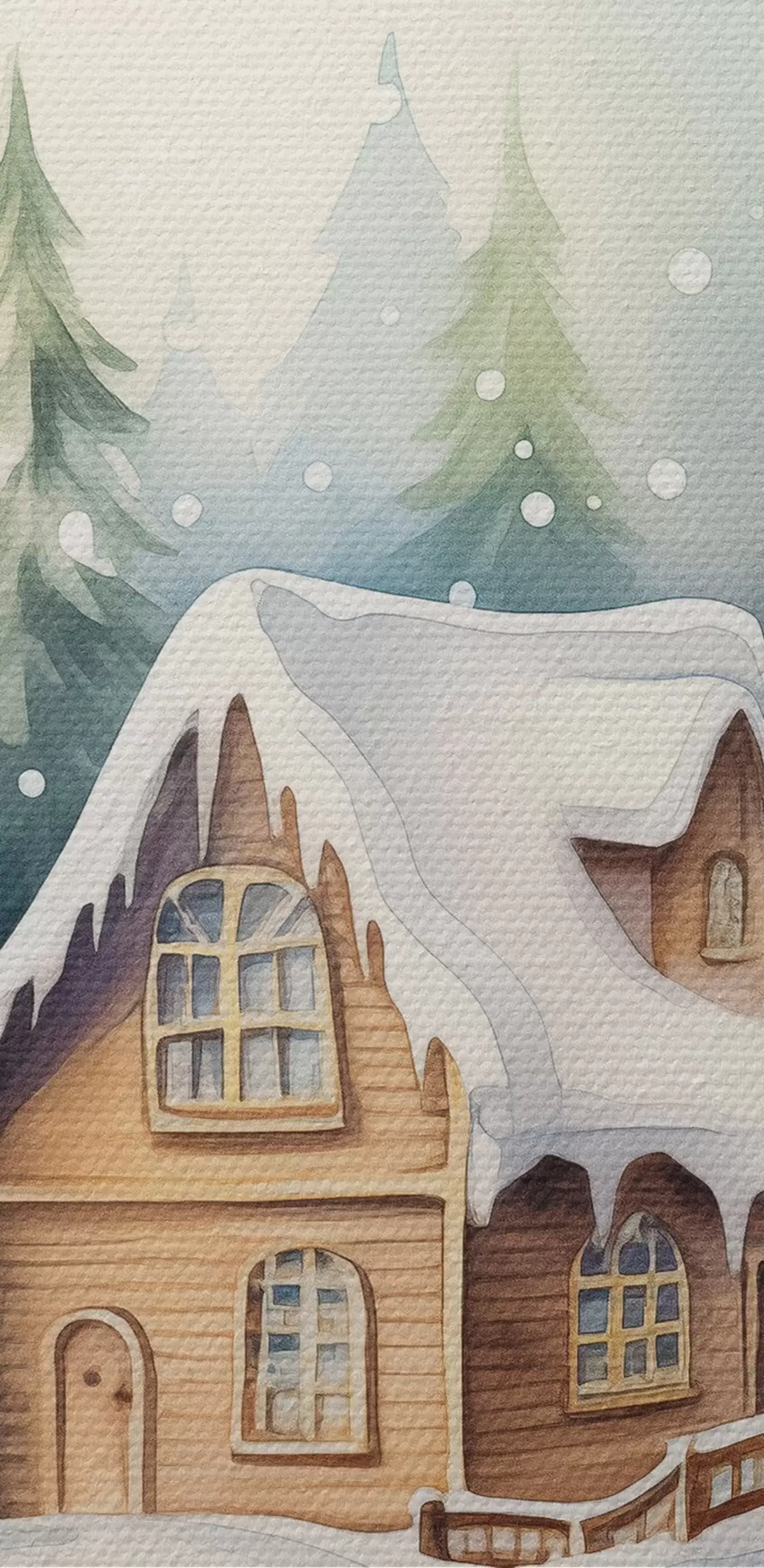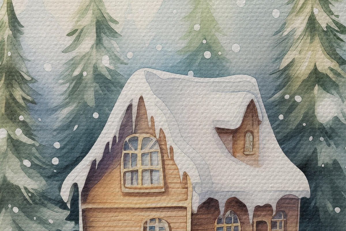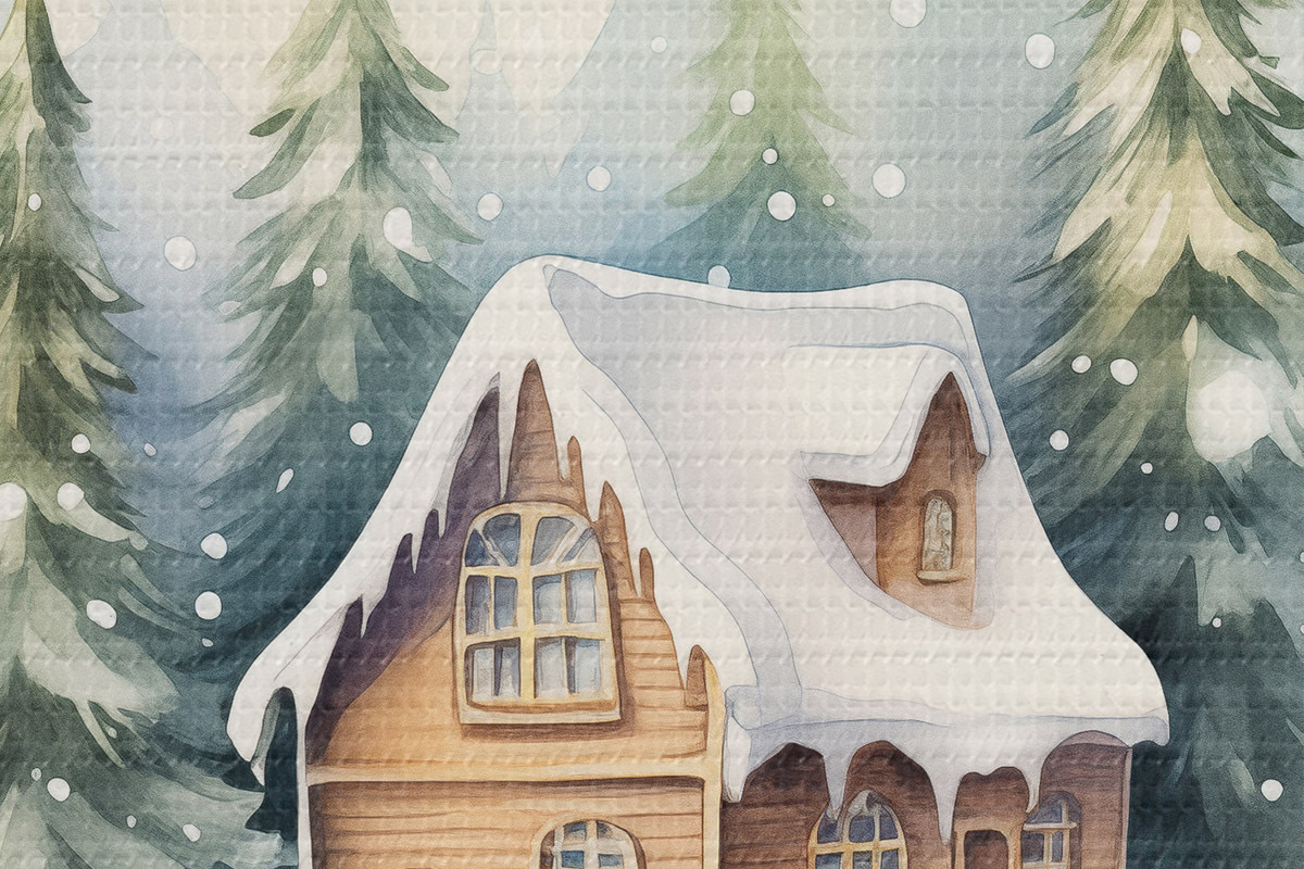 Ronde schilderijen Aquarel kristallen bol met winterlandschap, huis in het bos, sneeuw Nr r41366