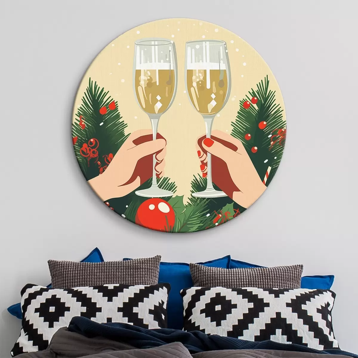 Ronde schilderijen Glazen met champagne, feest, nieuwjaar, abstractie, popart Nr r41367
