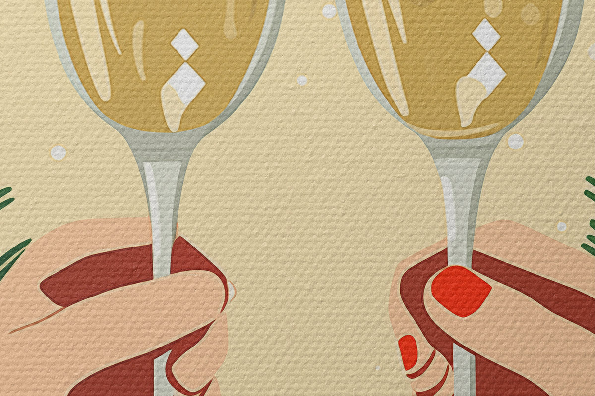 Ronde schilderijen Glazen met champagne, feest, nieuwjaar, abstractie, popart r41367