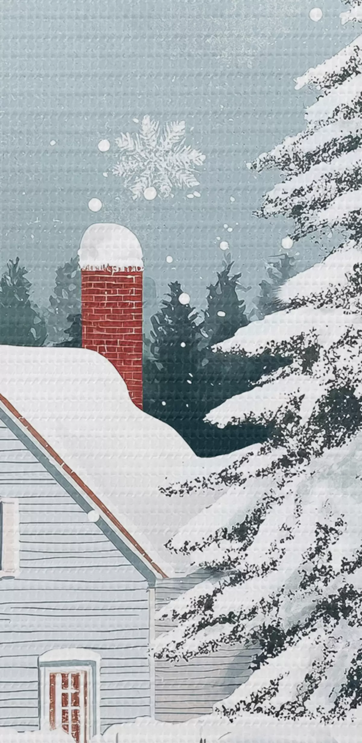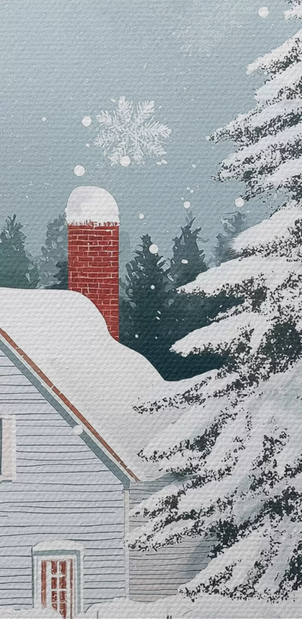 Ronde schilderijen Winterscène met huis bedekt met sneeuw, bos, pijnbomen r41369