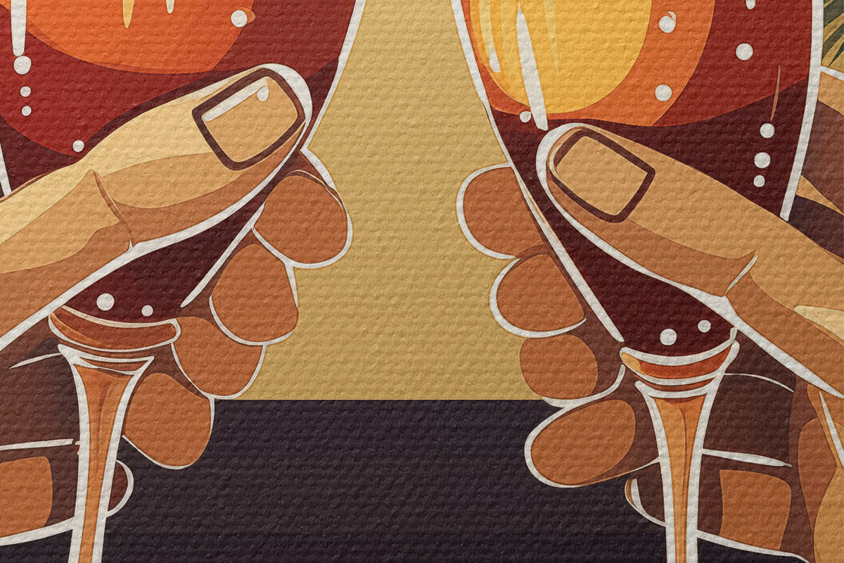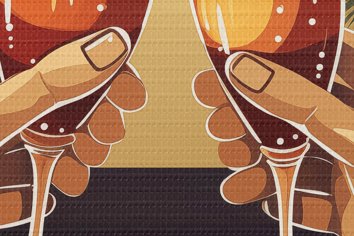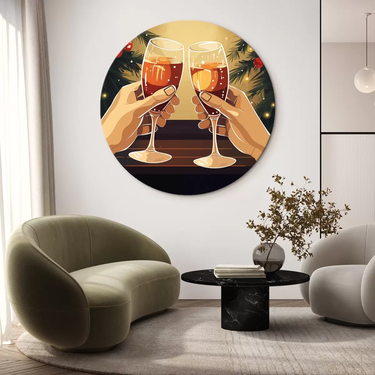 Ronde schilderijen Champagneglazen, feest, nieuwjaar, kerstverlichting Nr r41372