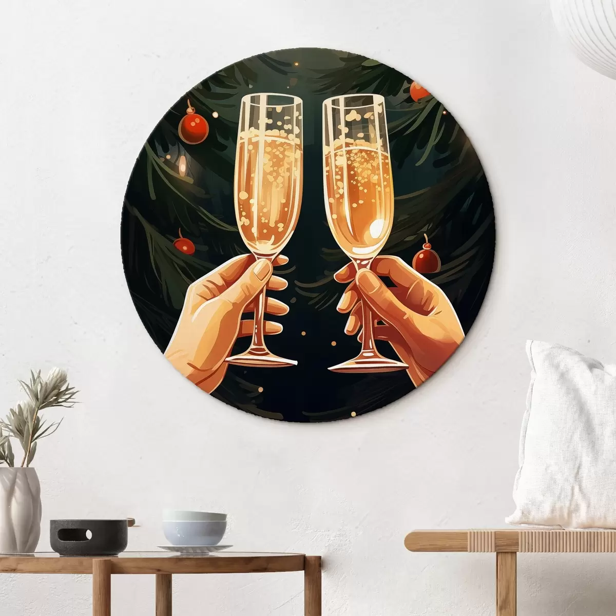 Ronde schilderijen Viering, champagneglazen, kerstmis, dennenboom, kaarsen, kerstverlichting Nr r41373