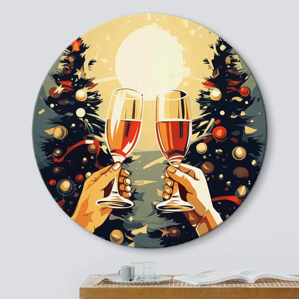 Ronde schilderijen Glazen met champagne, kerstmis, nieuwjaar, abstractie, popart, dennenbomen Nr r41374