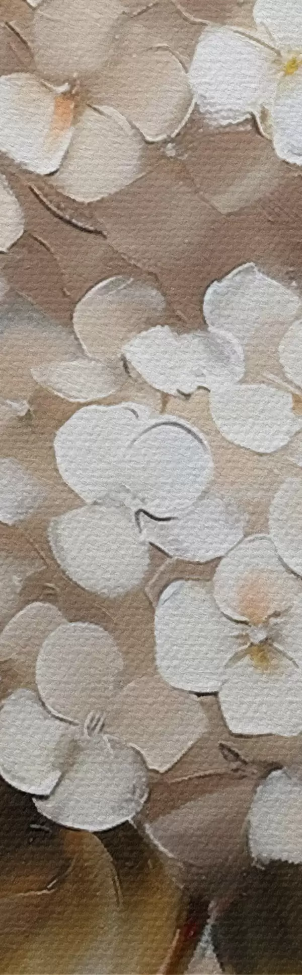 Het schilderij kan direct na ontvangst worden opgehangen. Het schilderij wordt opgespannen op een 2 cm breed houten spieraam.