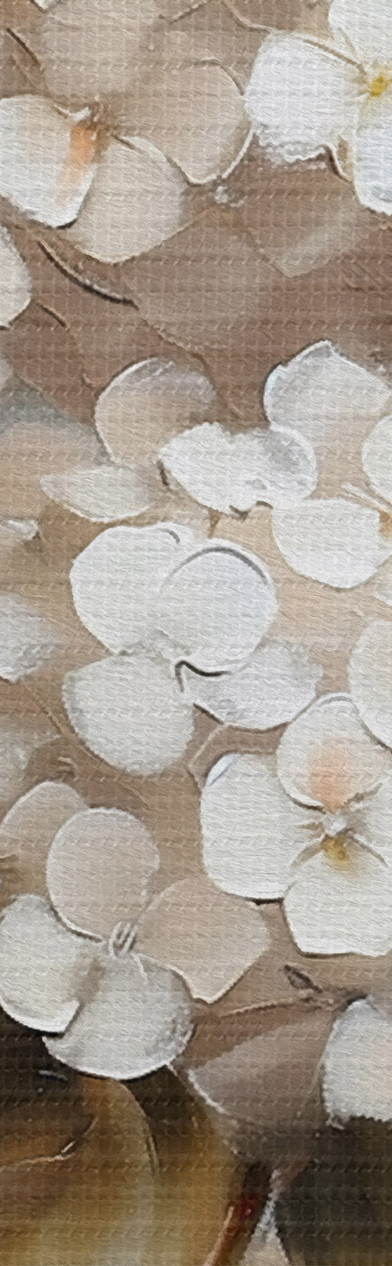 Er zijn drie soorten materiaal te bestellen: Economic Canvas - een dicht en duurzaam materiaal voor digitaal printen, identiek aan schildersdoek, waterdicht oppervlak, realistische weergave van details, materiaal met gemiddelde korrel. Premium Canvas - de textuur lijkt op die van schildersdoek (verweven kleine draden). Zachte, gedetailleerde reproductie van de afbeelding op een mat oppervlak. Eco-Premium - hoogwaardige 100% katoenen stof. Dankzij de natuurlijke katoenvezels is het materiaal duurzaam en slijtvast. Uitstekende kleurweergave en detail.