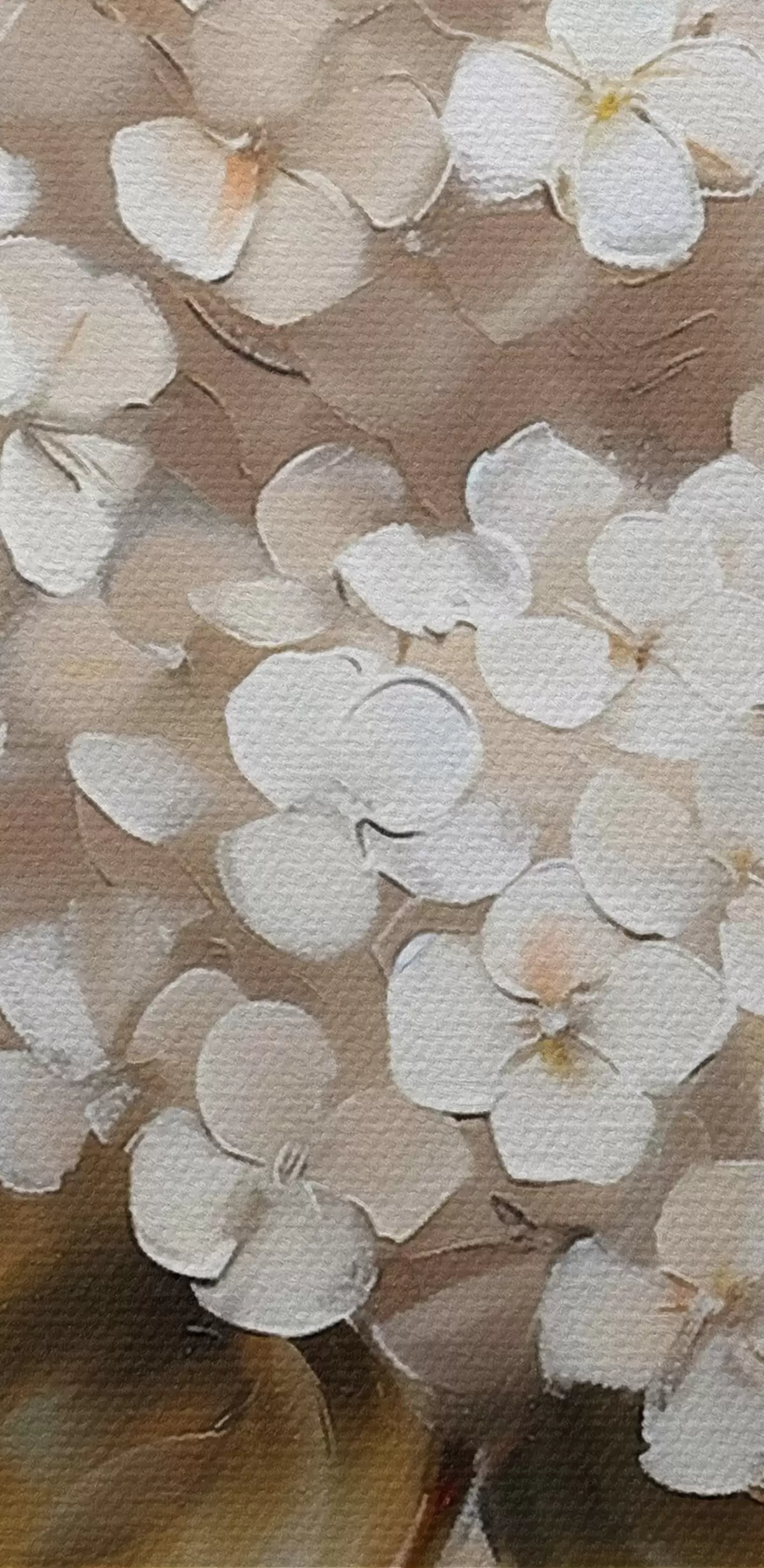 Het schilderij kan direct na ontvangst worden opgehangen. Het schilderij wordt opgespannen op een 2 cm breed houten spieraam.