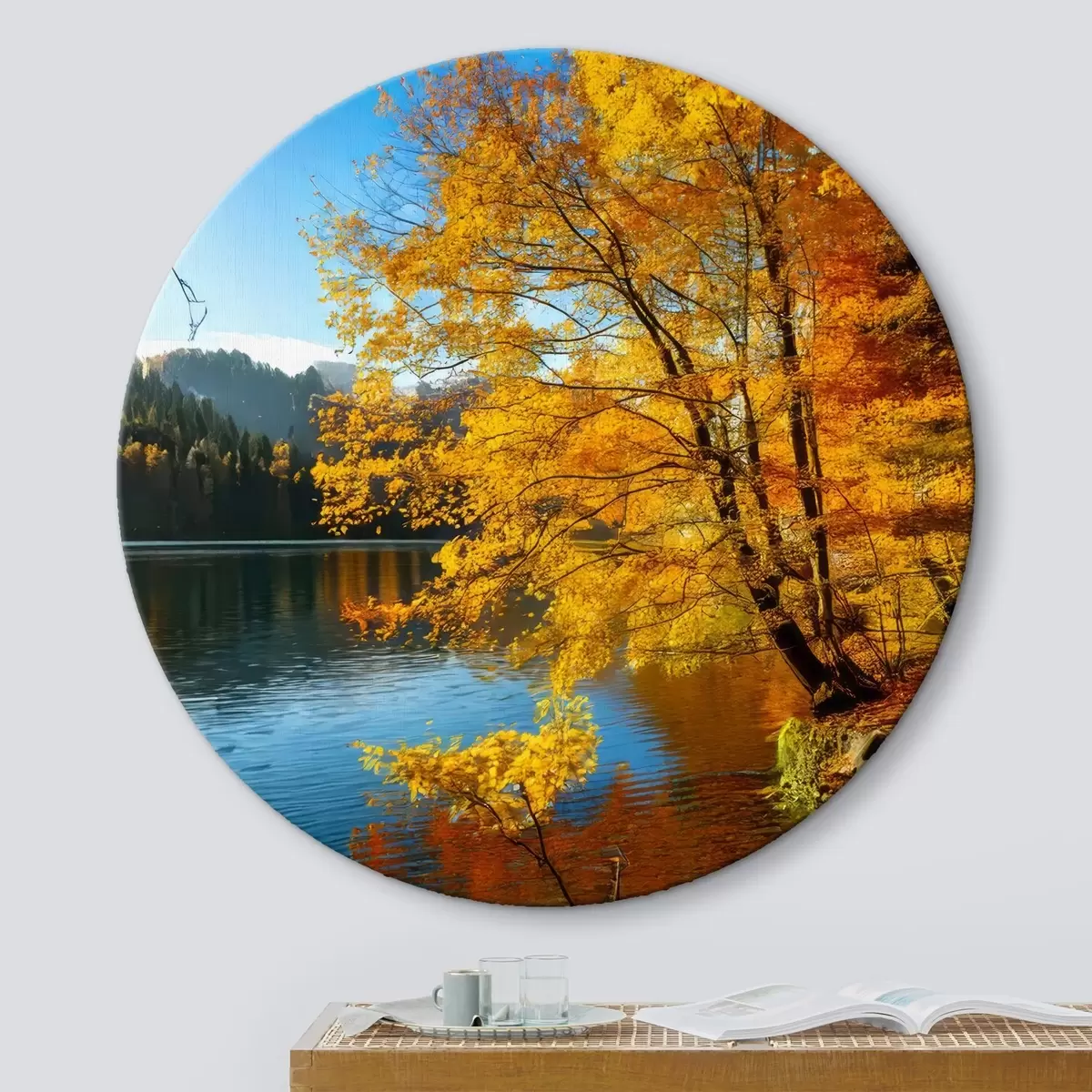 Ronde schilderijen herfstlandschap bij het meer r41407
