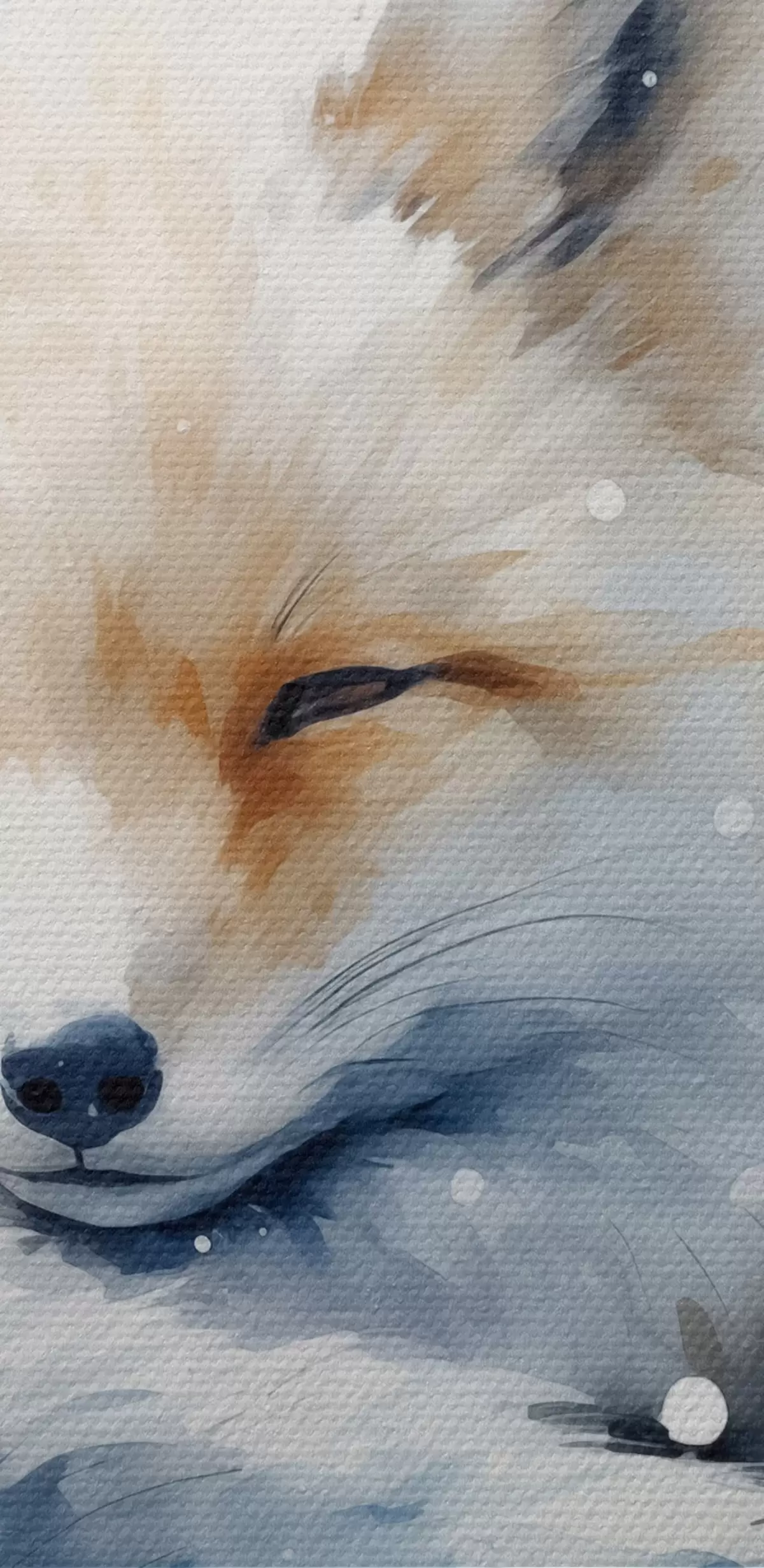 Ronde schilderijen Vos in de sneeuw imitatie aquarel illustratie r41436