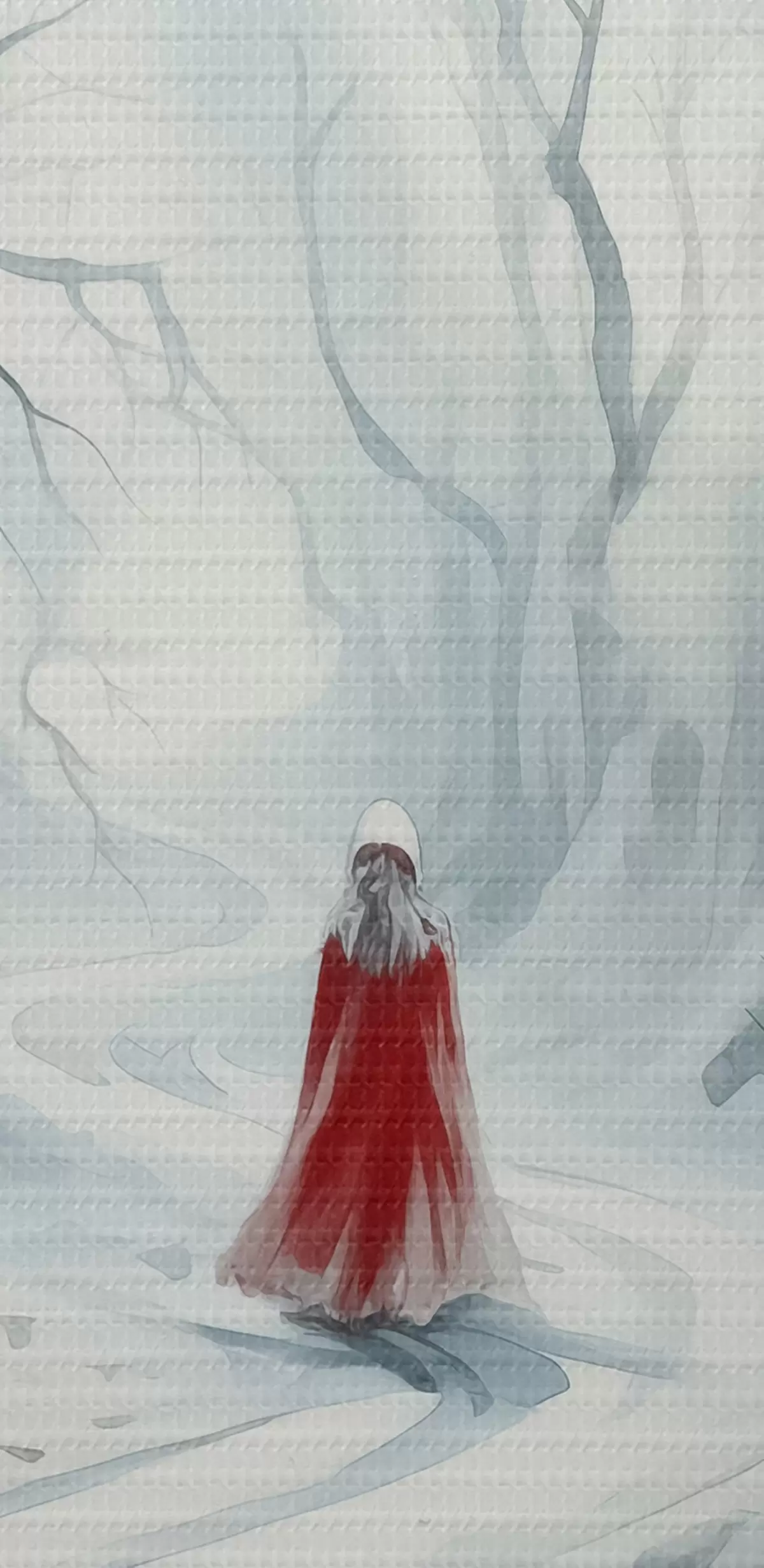 Ronde schilderijen Een man in een rode jas midden in een winters bos Nr r41438