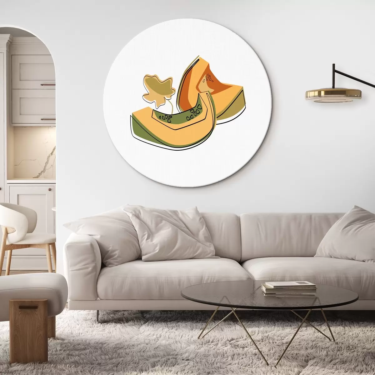 Ronde schilderijen Lineaire tekening van een meloen, abstractie r41466