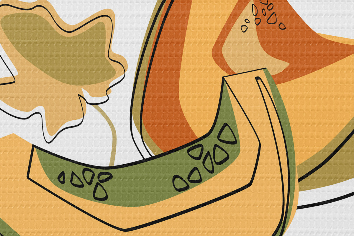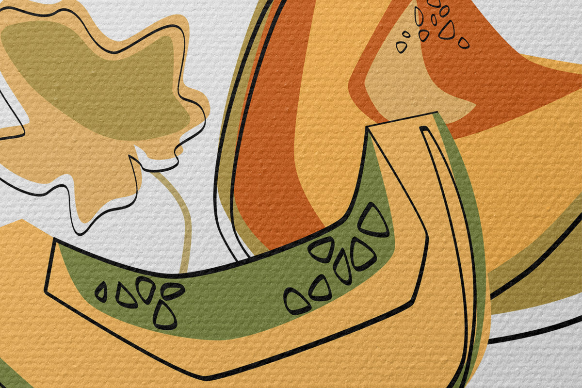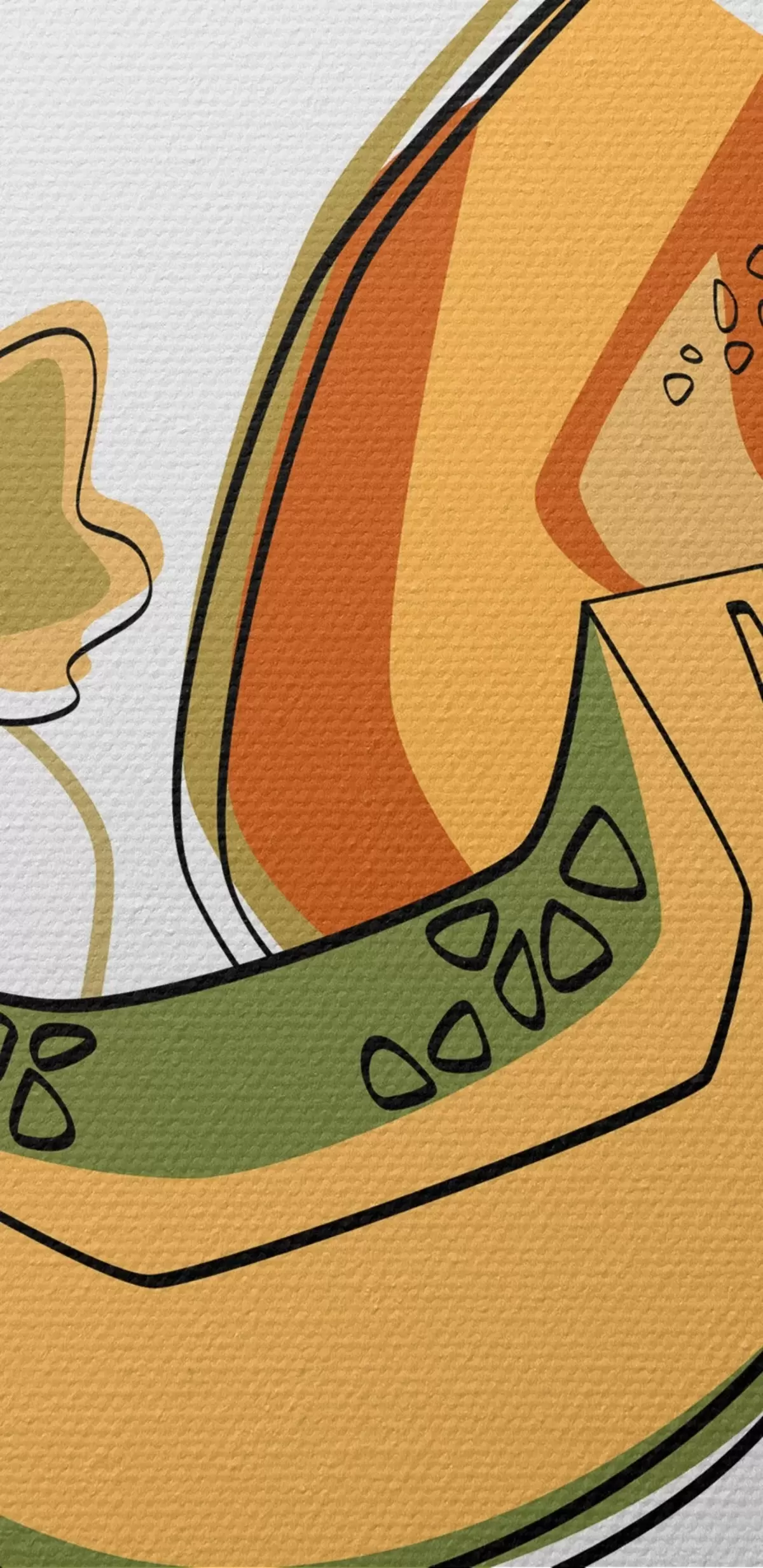 Ronde schilderijen Lineaire tekening van een meloen, abstractie Nr r41466