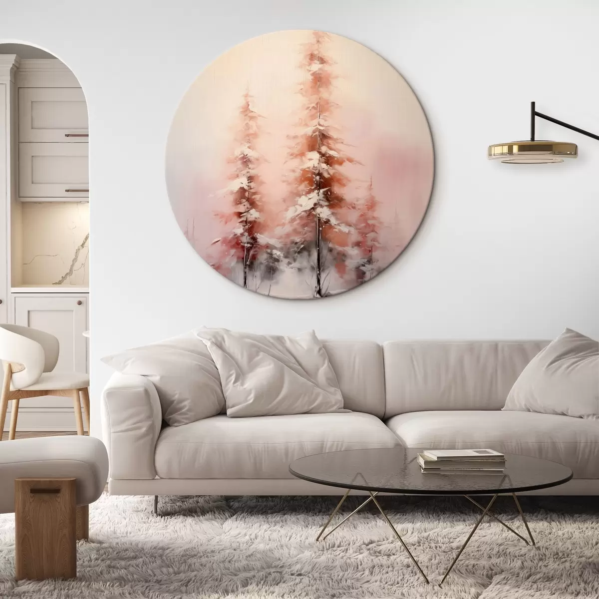 Ronde schilderijen Wintersparren bij zonsopgang in de mist Nr r41470