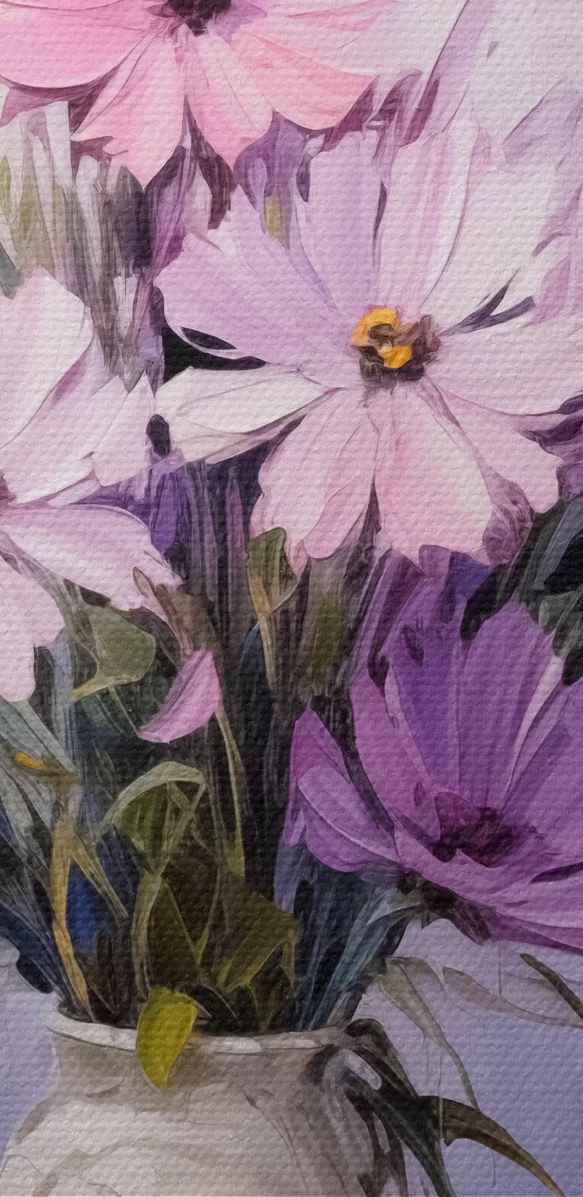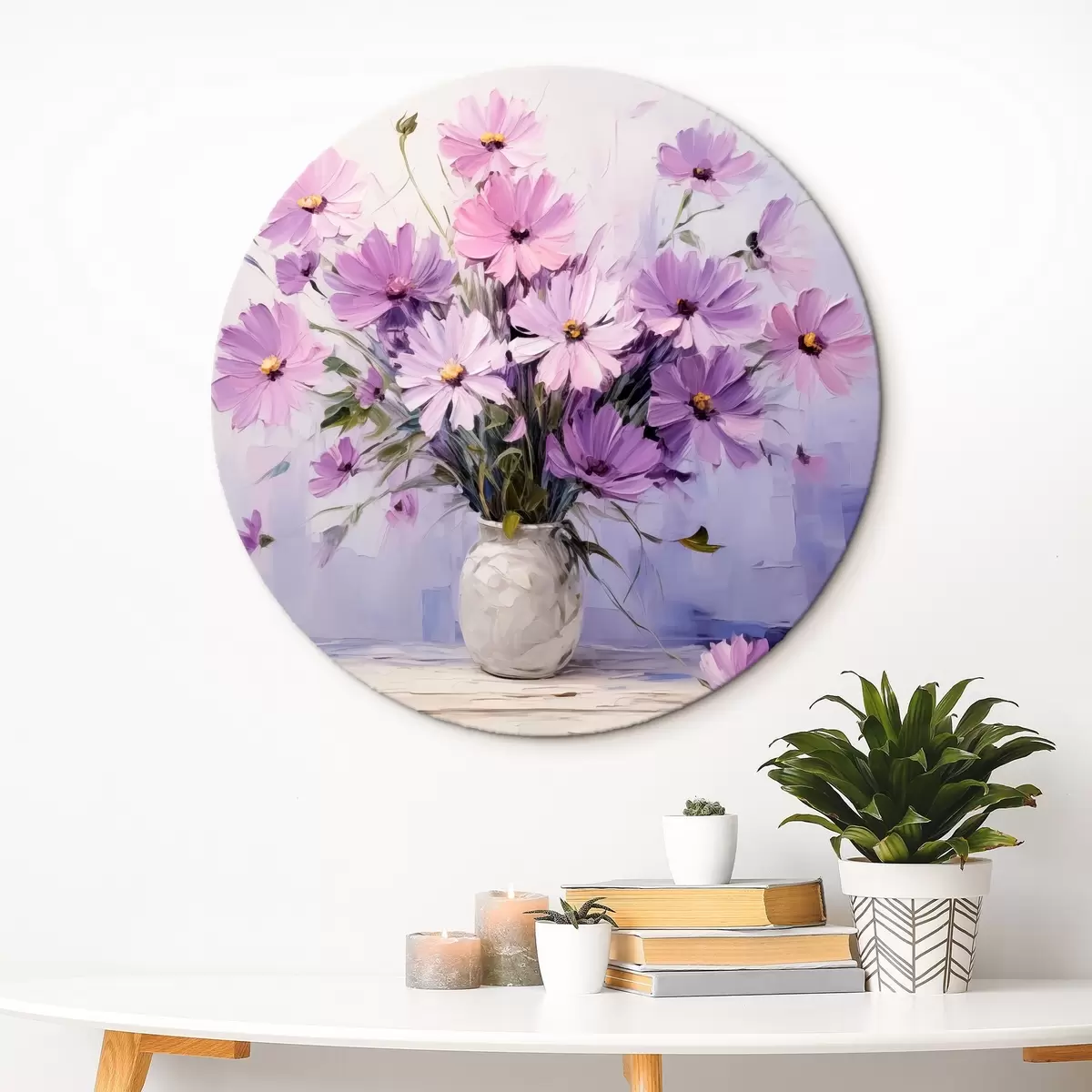 Ronde schilderijen Delicate paarse bloemen in een vaas Nr r41475