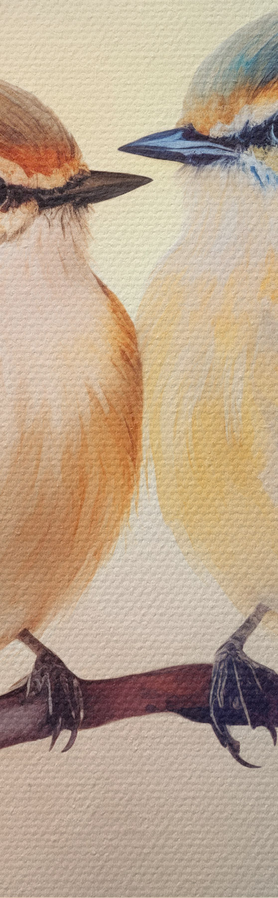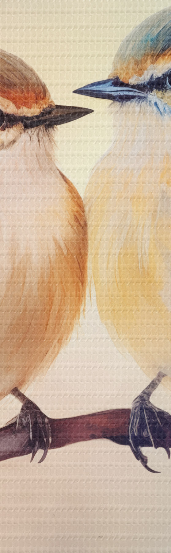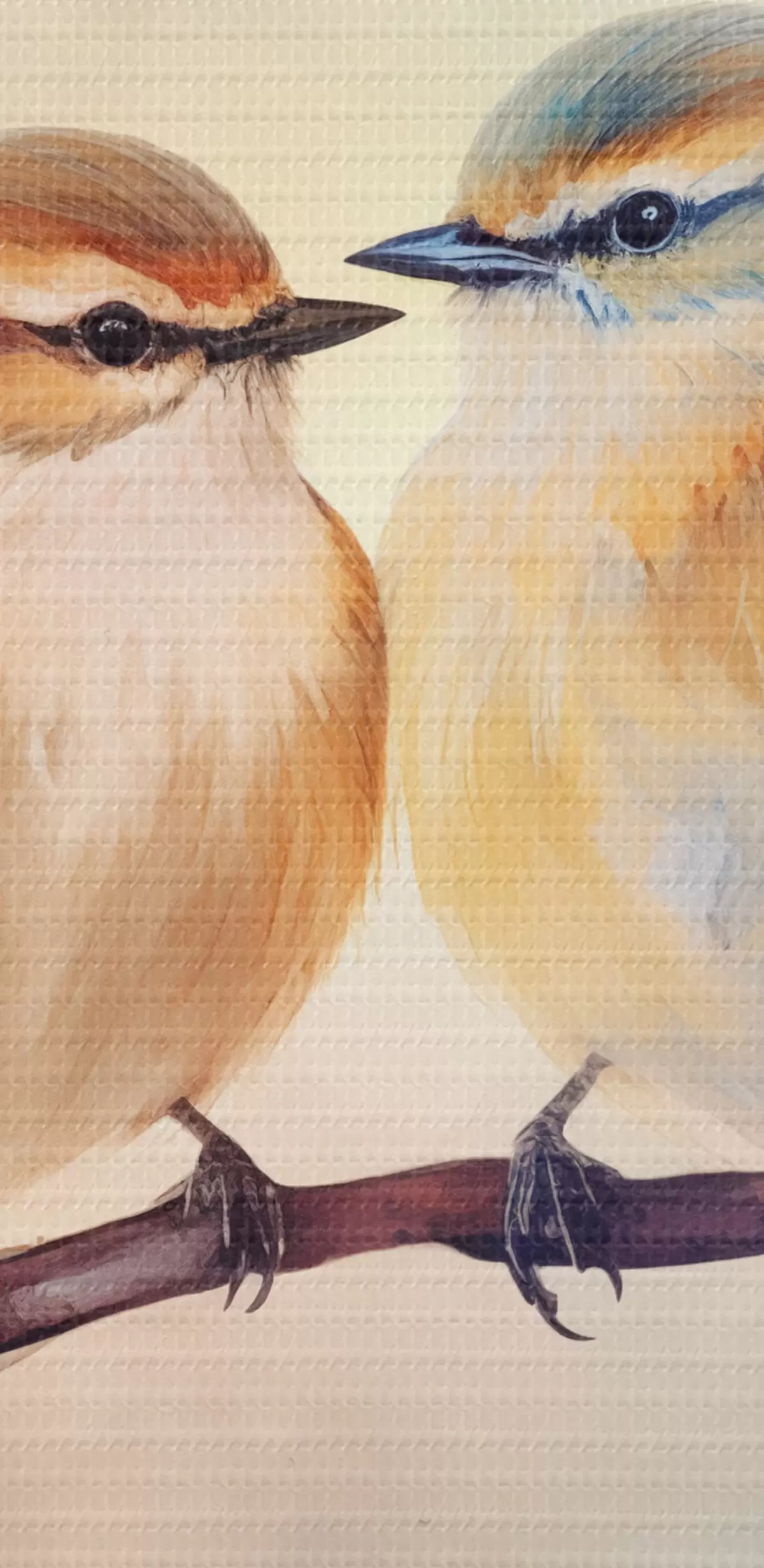 Ronde schilderijen Een vogelpaar zit op een bloeiende tak Nr r41476