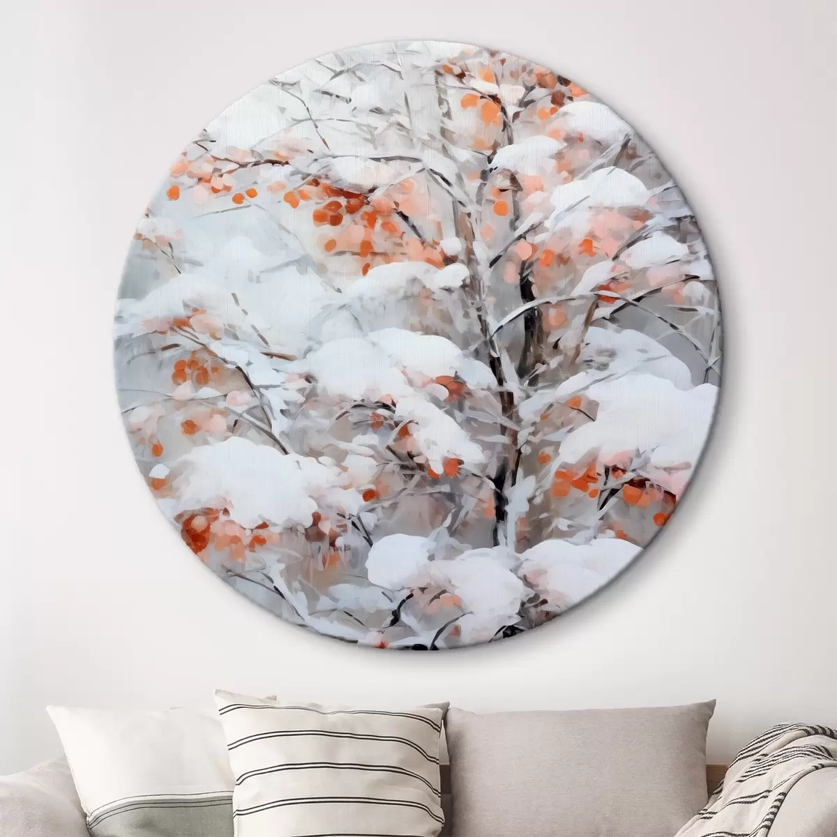 Ronde schilderijen Boom met bessen onder de sneeuw r41477