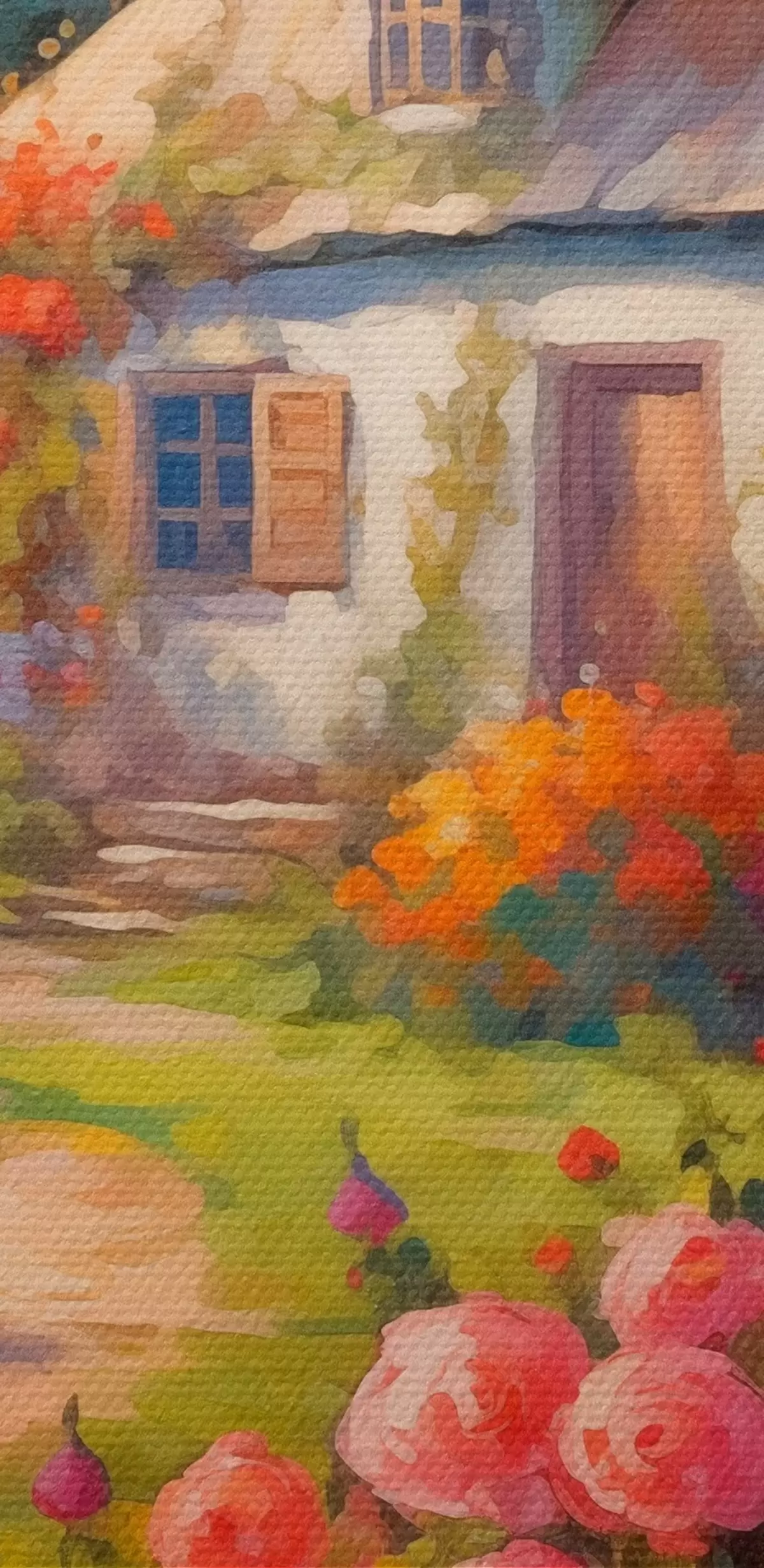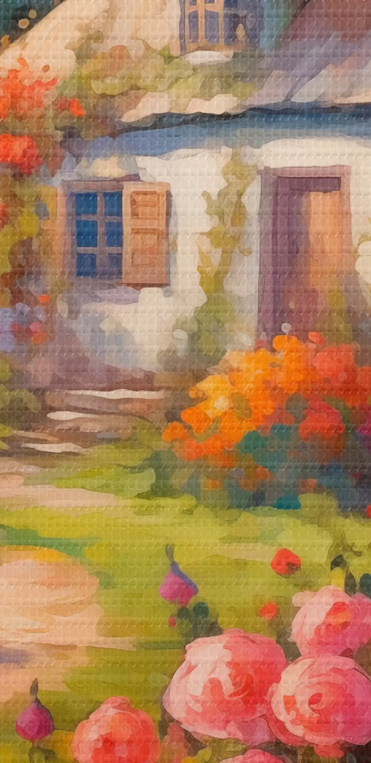 Ronde schilderijen Een huis in een rozentuin Nr r41491