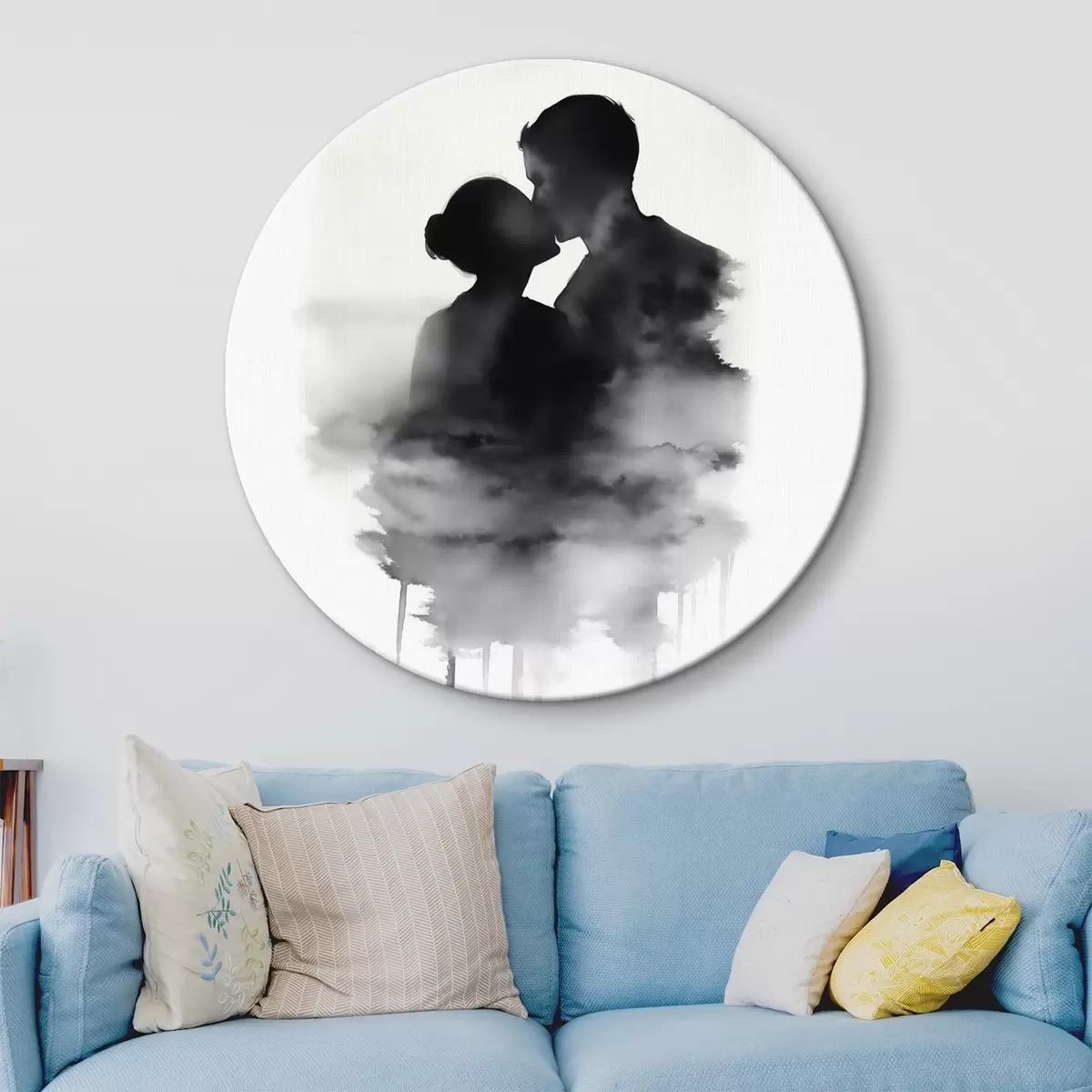 Ronde schilderijen Silhouet van een koppel in zwart-wit aquareltechniek Nr r41496