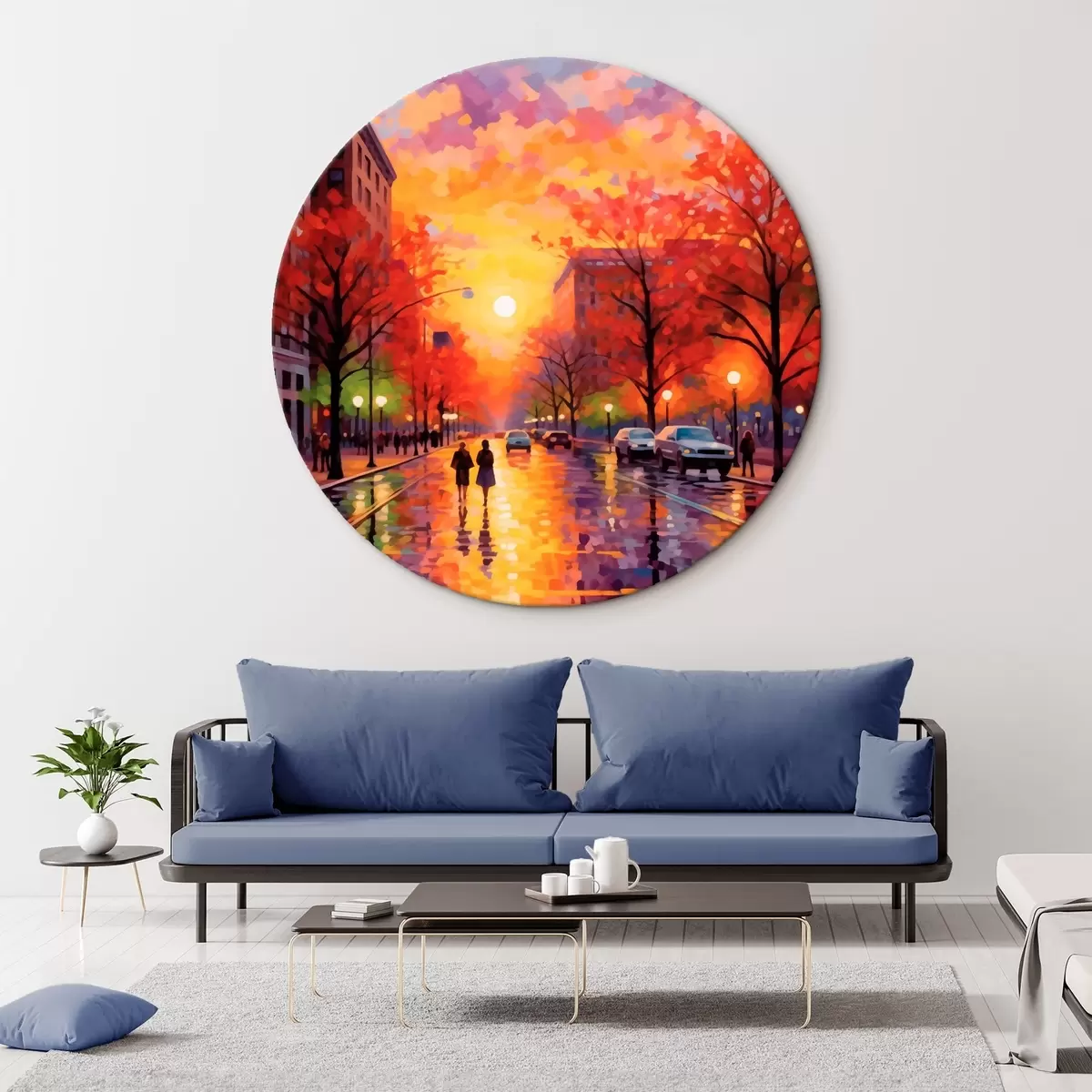 Ronde schilderijen Herfstavond in de stad r41499