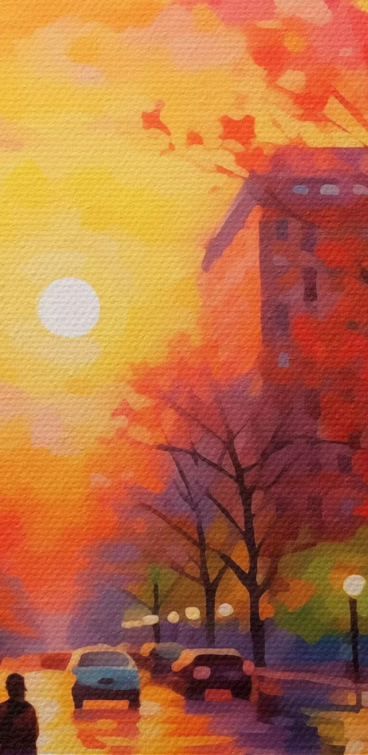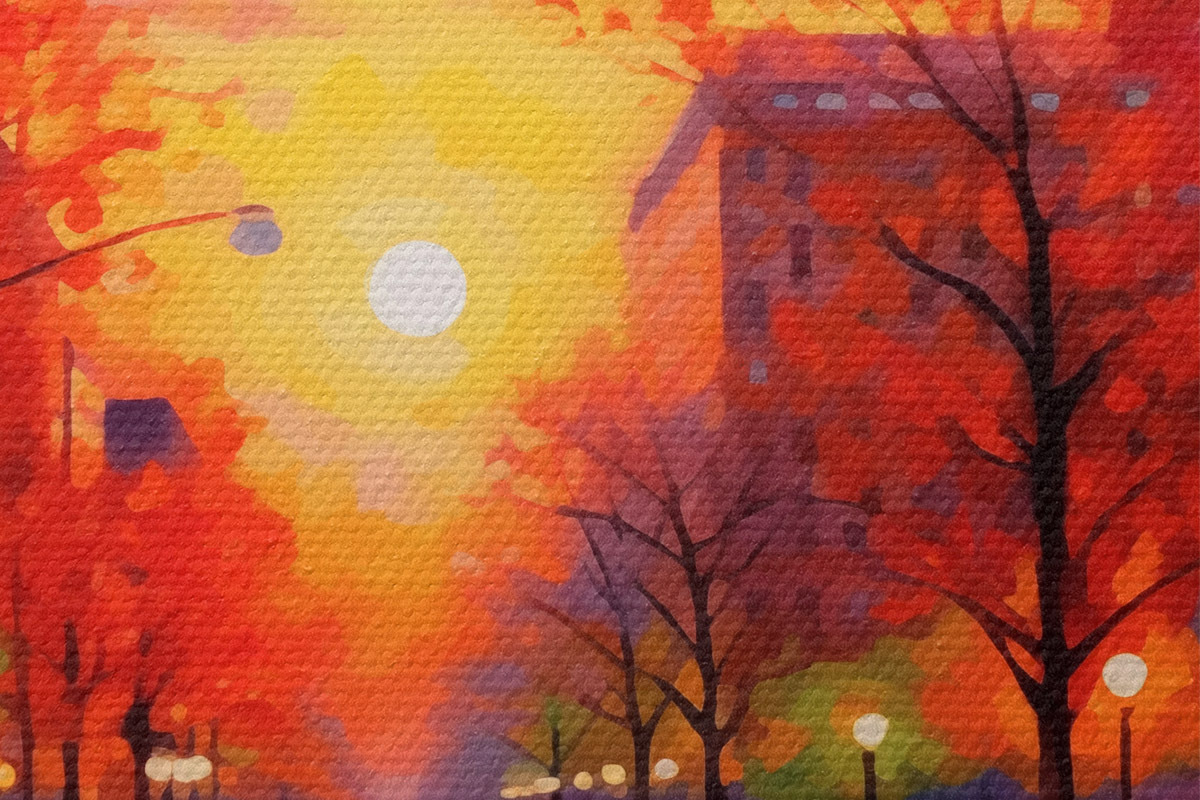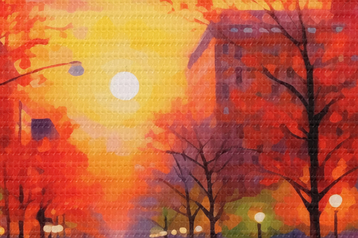Ronde schilderijen Herfstavond in de stad Nr r41499