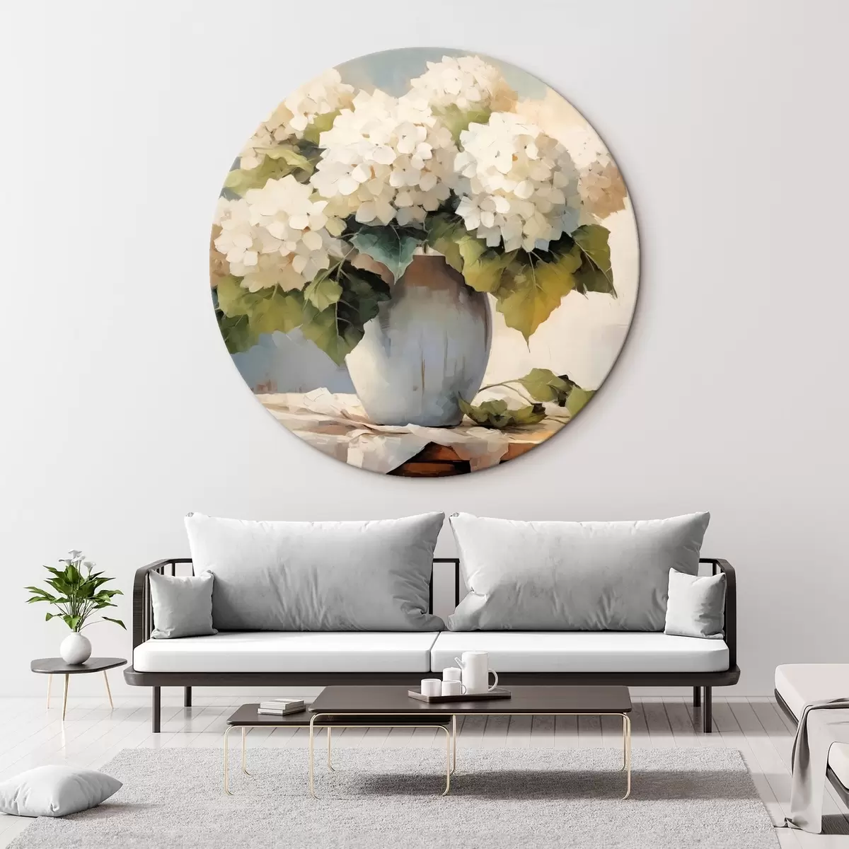 Ronde schilderijen Vaas met bloemen op tafel Nr r41761