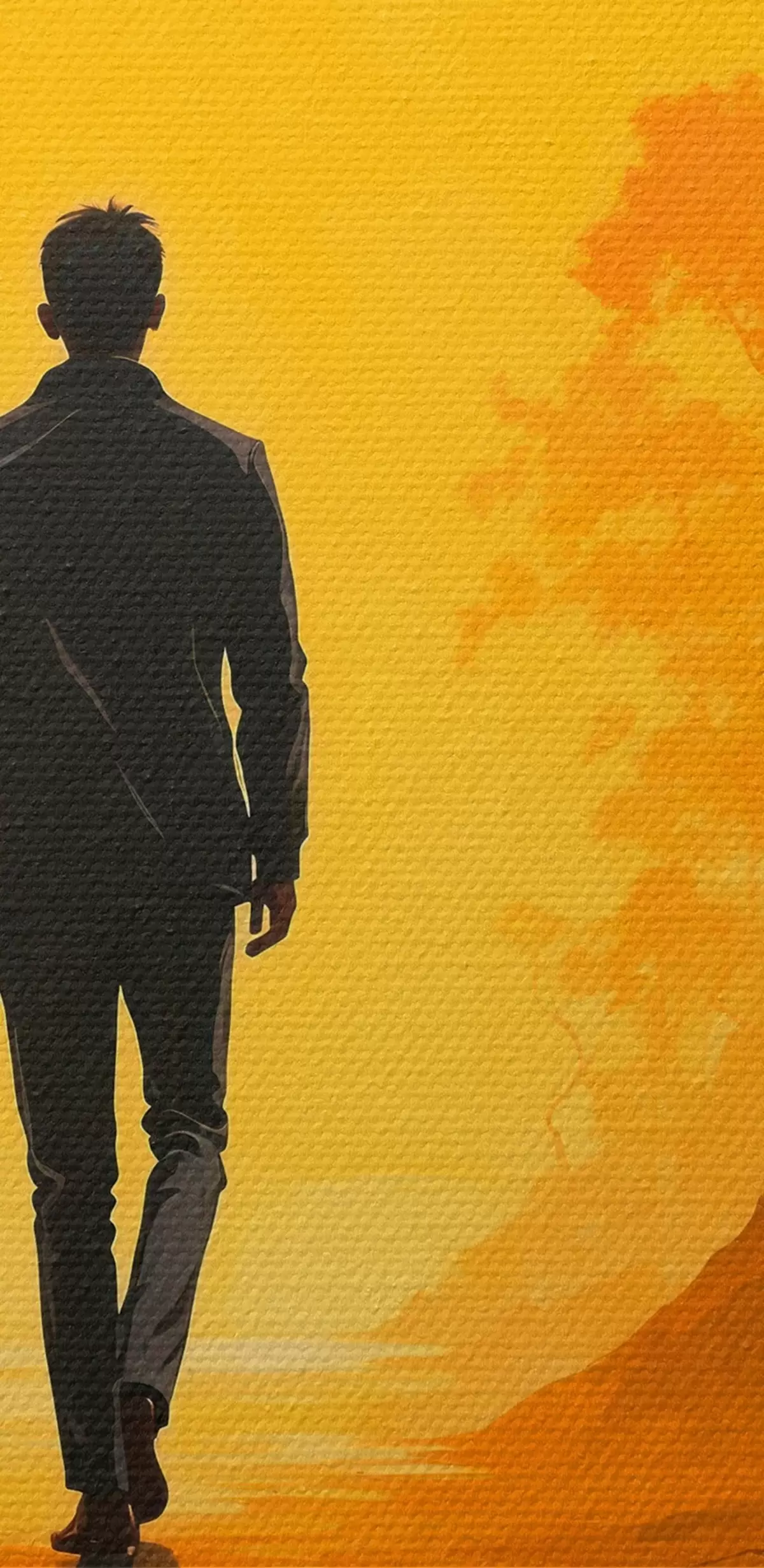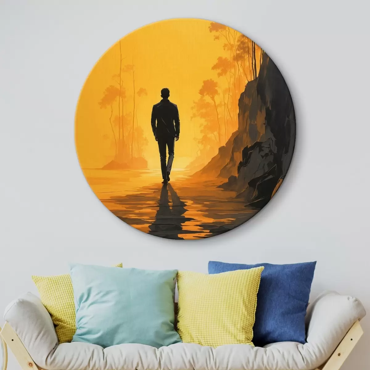 Ronde schilderijen Man loopt naar de zon Nr r41767