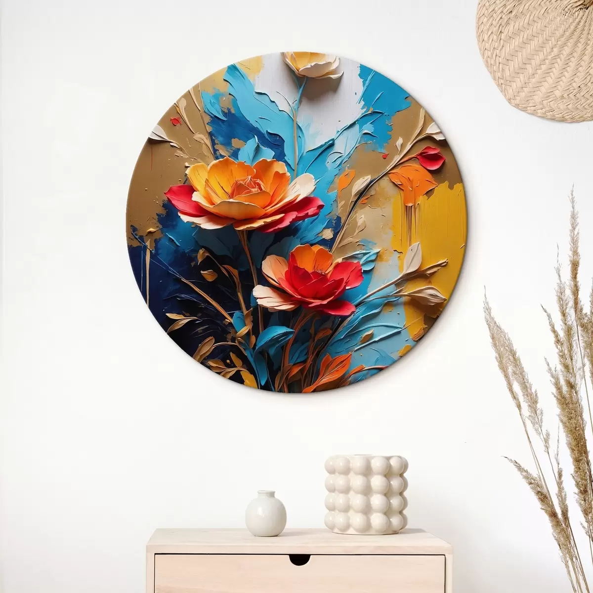 Ronde schilderijen Bloemen op abstracte veelkleurige achtergrond in olieverfstijl Nr r41769